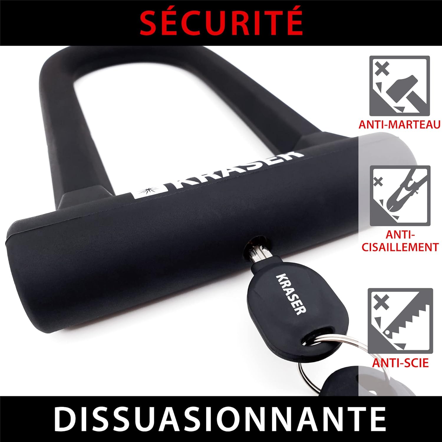 Notre antivol fonctionne avec une serrure à clé, fournie avec trois clés, pour éviter tout désagrément en cas de perte. Le mécanisme de verrouillage assure une utilisation fluide et sécurisée au quotidien.