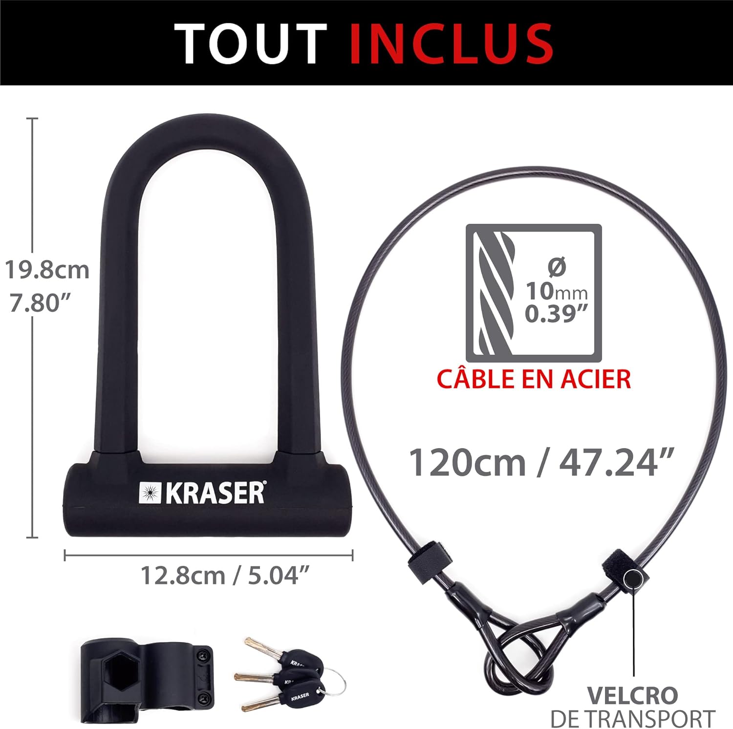 En complément du cadenas, notre câble en acier souple de 120 cm permet de sécuriser plusieurs parties du vélo, comme les roues ou le cadre, à un point d’ancrage fixe. Sa grande flexibilité assure une fixation facile et efficace.