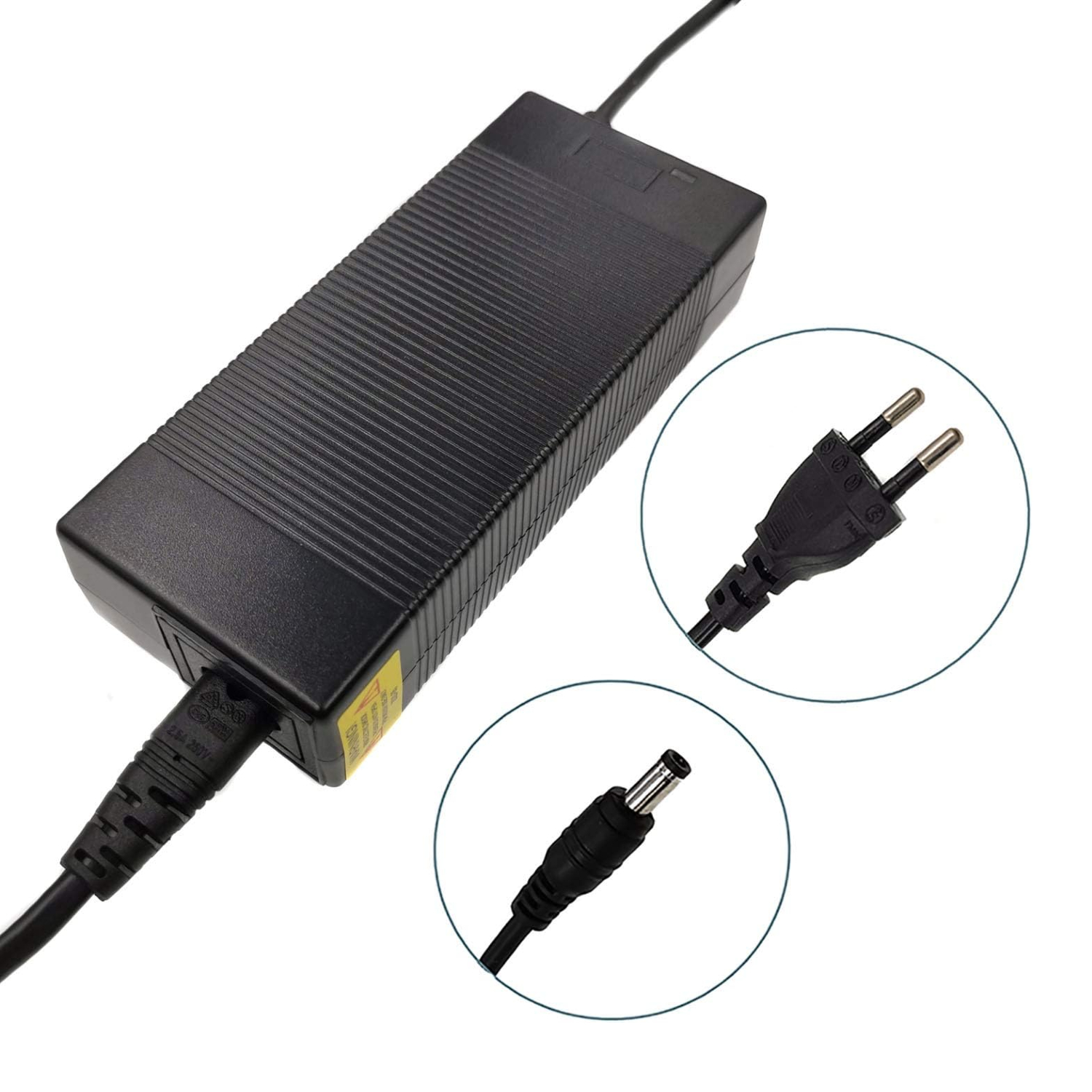 Ce chargeur est spécialement conçu pour les batteries lithium-ion 36V des vélos électriques. Son connecteur baril DC5,5 x 2,1 mm assure une compatibilité avec une large gamme de modèles.