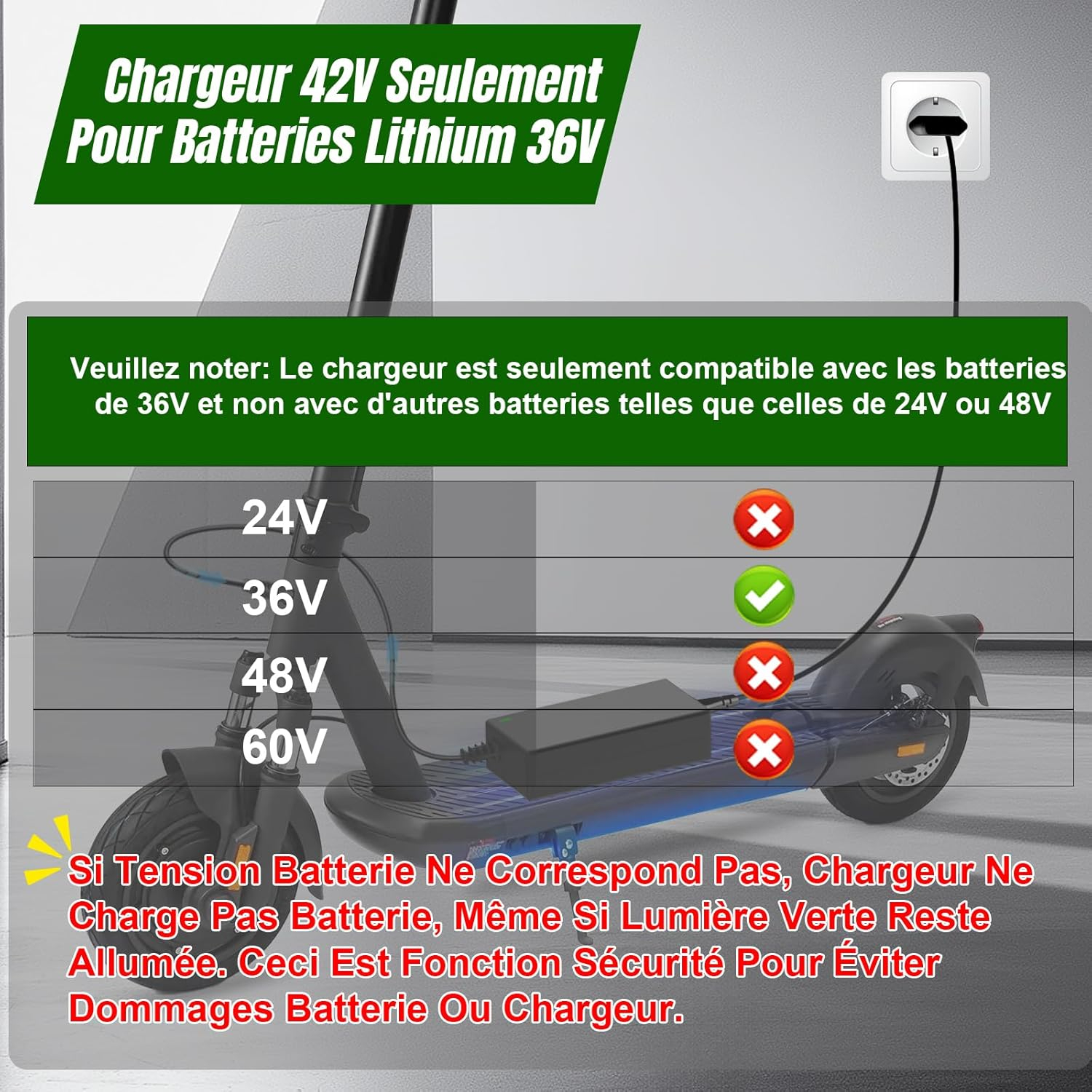 Compatibilité : Adapté aux batteries lithium-ion de vélos électriques et scooters 36V