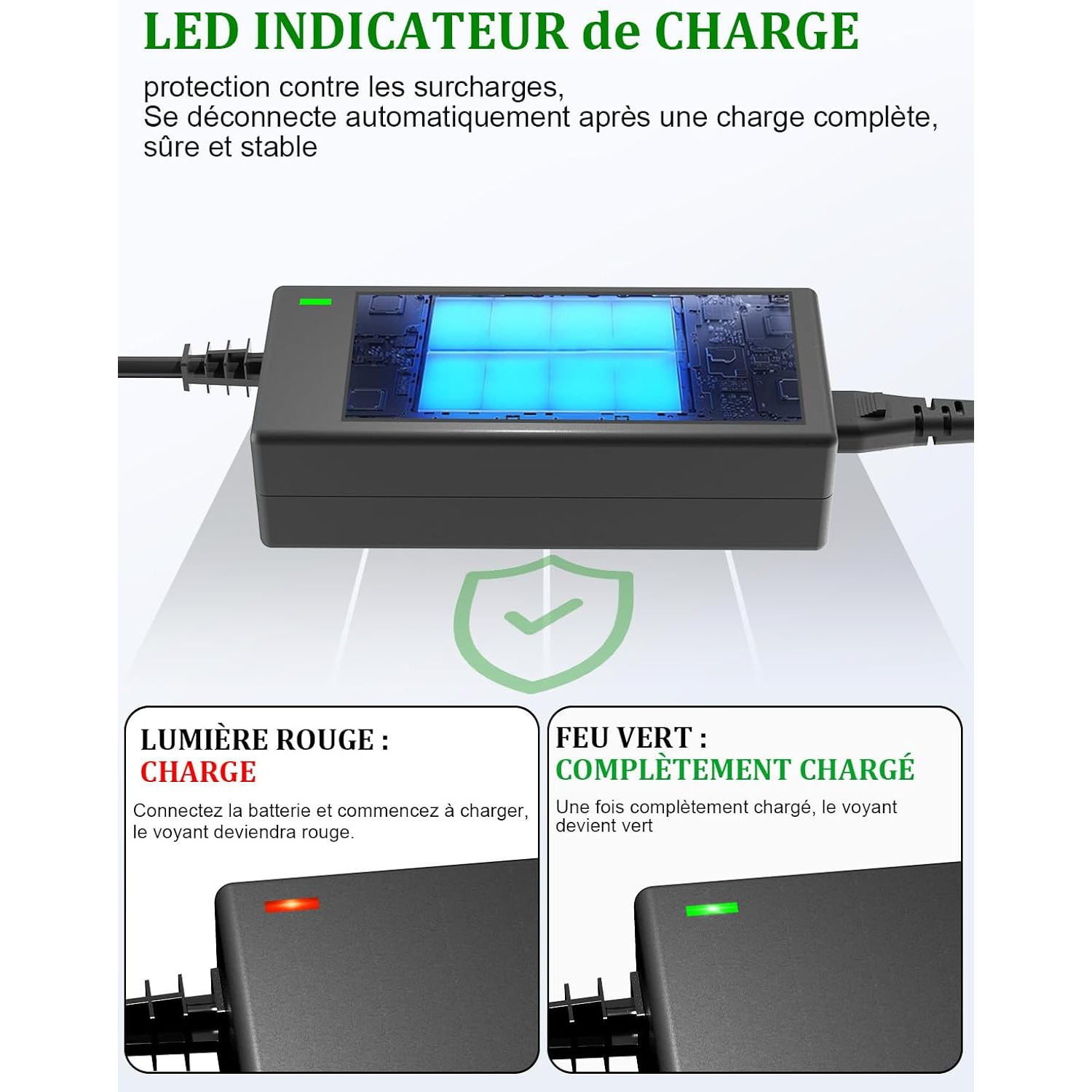 Charge rapide et sécurisée avec arrêt automatique