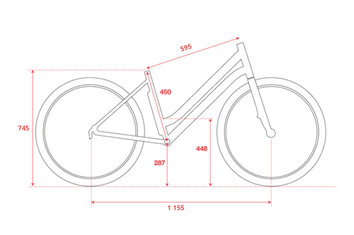 Ce vélo électrique à cadre bas pour femme est doté d’un cadre de 460 mm, idéal pour une cycliste mesurant entre 1m65 et 1m80. La géométrie ouverte facilite l’enjambement et offre une posture équilibrée, parfaitement adaptée à une conduite urbaine confortable. Ce modèle supporte une charge maximale de 90 kg, incluant la cycliste et les accessoires transportés.