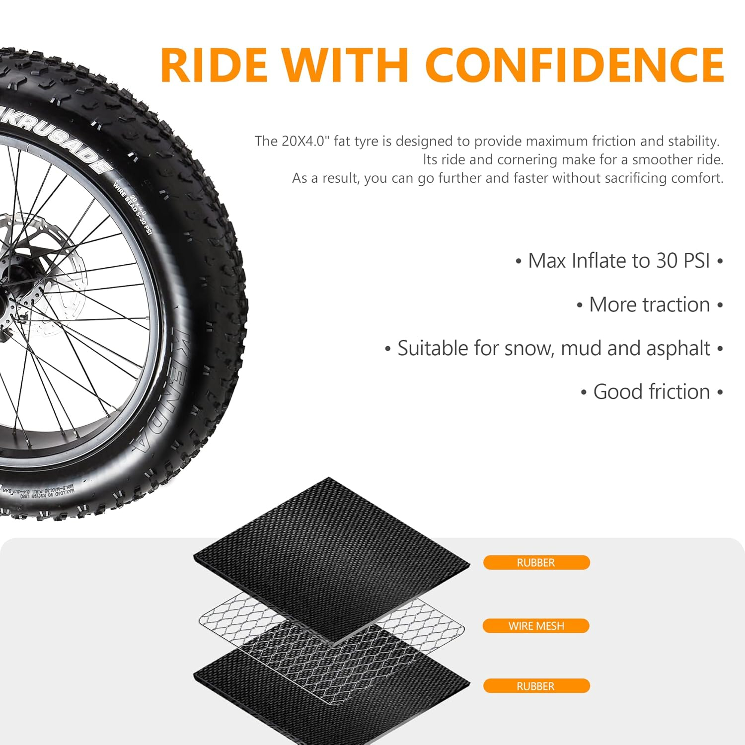 Notre vélo à assistance électrique à gros pneus est spécialement conçu pour une polyvalence optimale. Équipé de pneus de 20 x 4 pouces, il assure une adhérence exceptionnelle et une stabilité remarquable sur diverses surfaces, qu’il s’agisse de routes goudronnées, de chemins de terre, de sable ou même de neige. Ce design robuste et ses pneus anti-crevaison prolongent sa durée de vie, vous garantissant de nombreuses sorties sans souci. La conception de ce cyclomoteur électrique tout-terrain a été pensée pour les adultes en quête d’un moyen de transport fiable et performant.