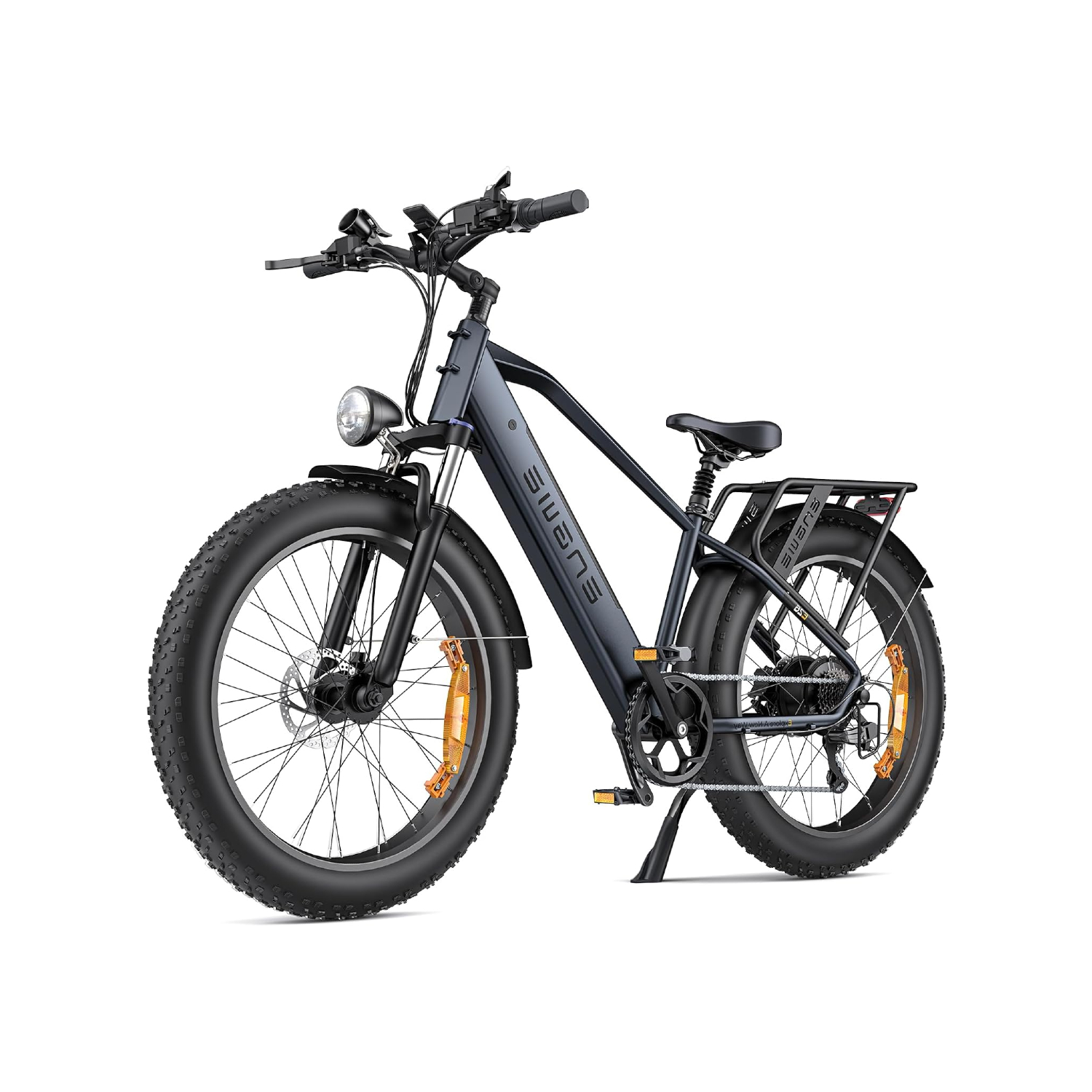 Le cadre de notre Fat Bike Électrique Avec Accélérateur est construit à partir d’un mélange d’aluminium robuste et d’acier au carbone, conférant à l’ensemble une durabilité exceptionnelle. Cette conception solide, associée aux pneus surdimensionnés de 26*4 pouces, assure une excellente maniabilité et une capacité à affronter divers environnements. Que vous vous aventuriez en montagne, sur la neige ou en ville, ce vélo est conçu pour exceller, offrant une traction supérieure et une grande stabilité.