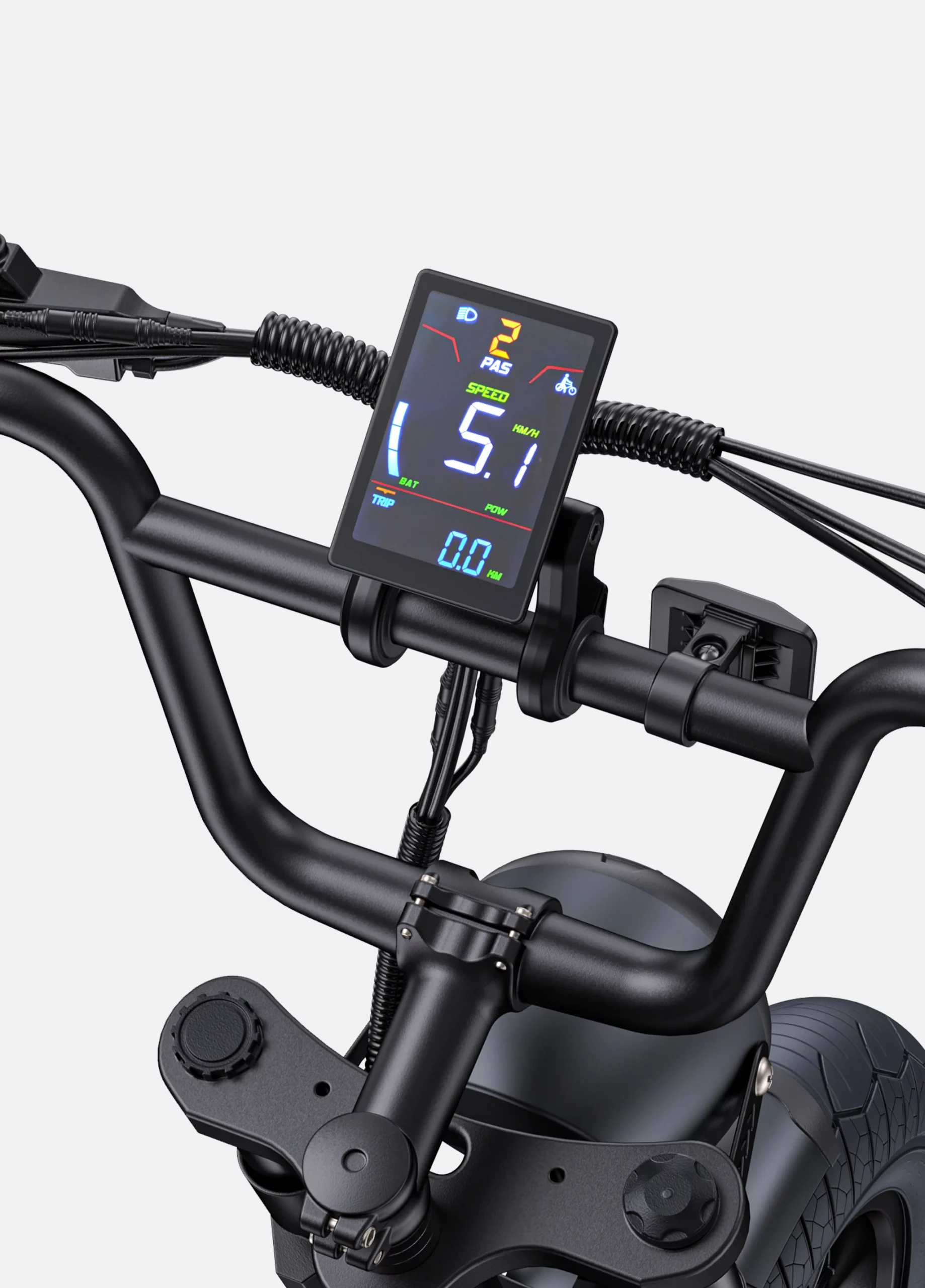 L’écran LCD couleur de notre cycle électrique tout-terrain offre un affichage moderne et intuitif, vous fournissant toutes les informations essentielles en un coup d’œil : vitesse, autonomie, niveau de batterie et mode d’assistance. Cette interface claire vous assure une maîtrise totale de votre conduite. De plus, la transmission Shimano à 7 vitesses s’adapte à tous les types de routes et d’inclinaisons, vous permettant d’ajuster votre effort pour une conduite fluide et sans effort, que ce soit pour aborder des pentes ou accélérer.