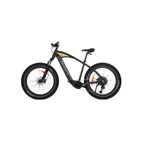 Notre Fat Bike électrique style Surf est équipé d’un moteur central SHIMANO EP8 de 250 W nominal (500 W en pic) avec un couple de 85 Nm. Il permet de gravir facilement les pentes tout en conservant une sensation naturelle de pédalage. Cinq modes d’assistance (Off, Eco, Trail, Boost et Walk) sont disponibles pour adapter la puissance selon le terrain et vos besoins.