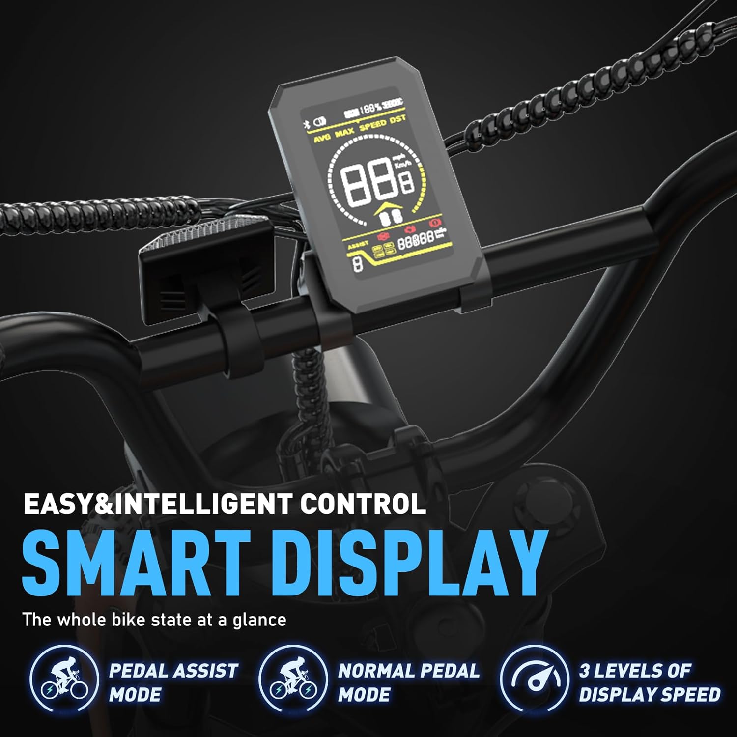 Notre Fat Bike Électrique Tout Terrain est pensé pour l’utilisateur. Il est équipé d’un écran LCD intuitif qui fournit des informations en temps réel essentielles, telles que la vitesse, la distance parcourue et le niveau de la batterie. De plus, il propose deux modes de fonctionnement : le mode pédale classique pour un effort physique soutenu, et le mode d’assistance au pédalage pour un soutien motorisé, offrant ainsi une flexibilité appréciable pour s’adapter à vos préférences et au terrain.