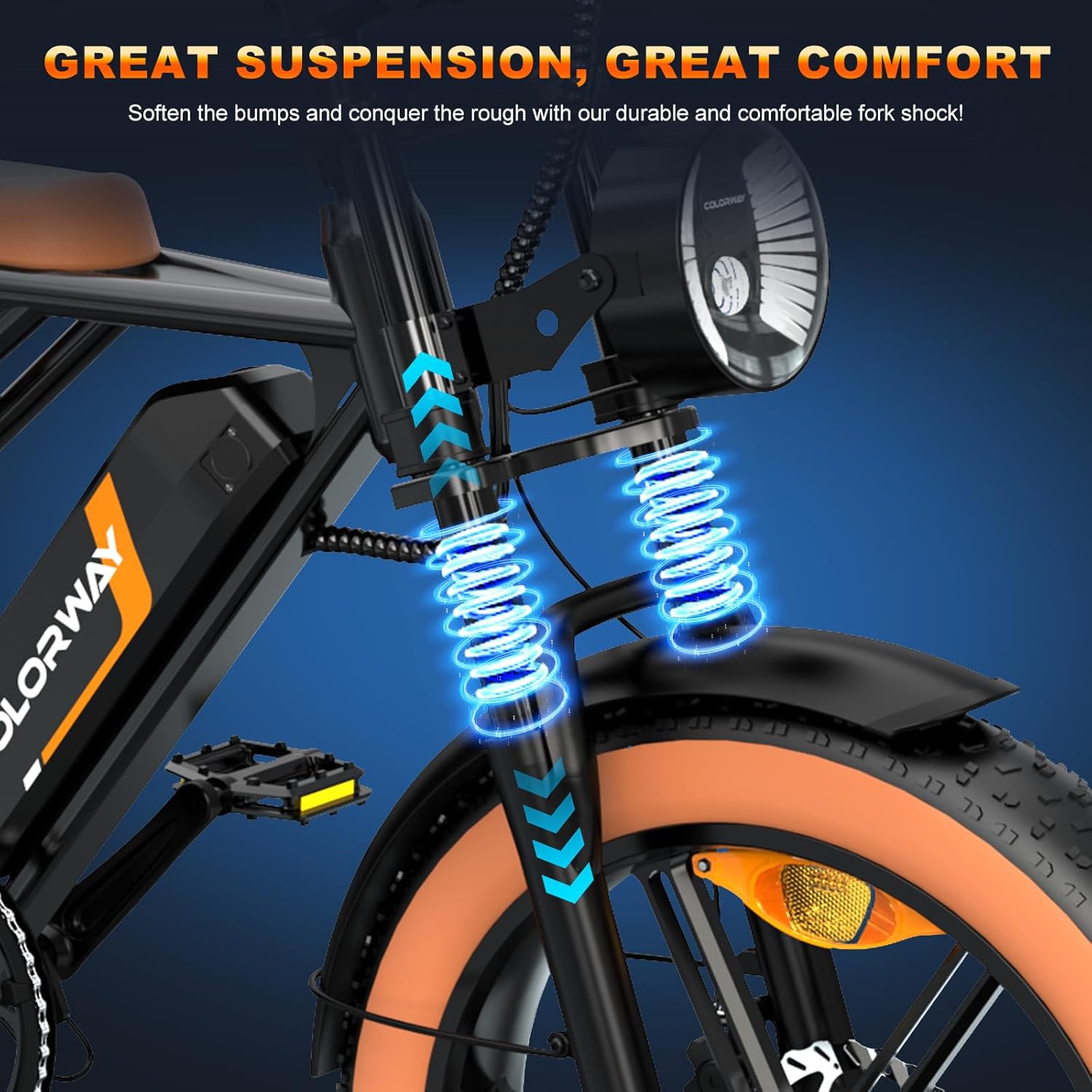 Pour une expérience de conduite des plus agréables, notre vélo intègre une fourche avant avec système de suspension. Associée à une transmission à 7 vitesses, cette caractéristique assure une conduite fluide et sans effort, que vous rouliez sur des routes planes ou que vous gravissiez des pentes avec un angle maximal de 25 degrés. Le passage des vitesses s’effectue aisément via une poignée tournante, contribuant à une maniabilité optimale en toutes circonstances.