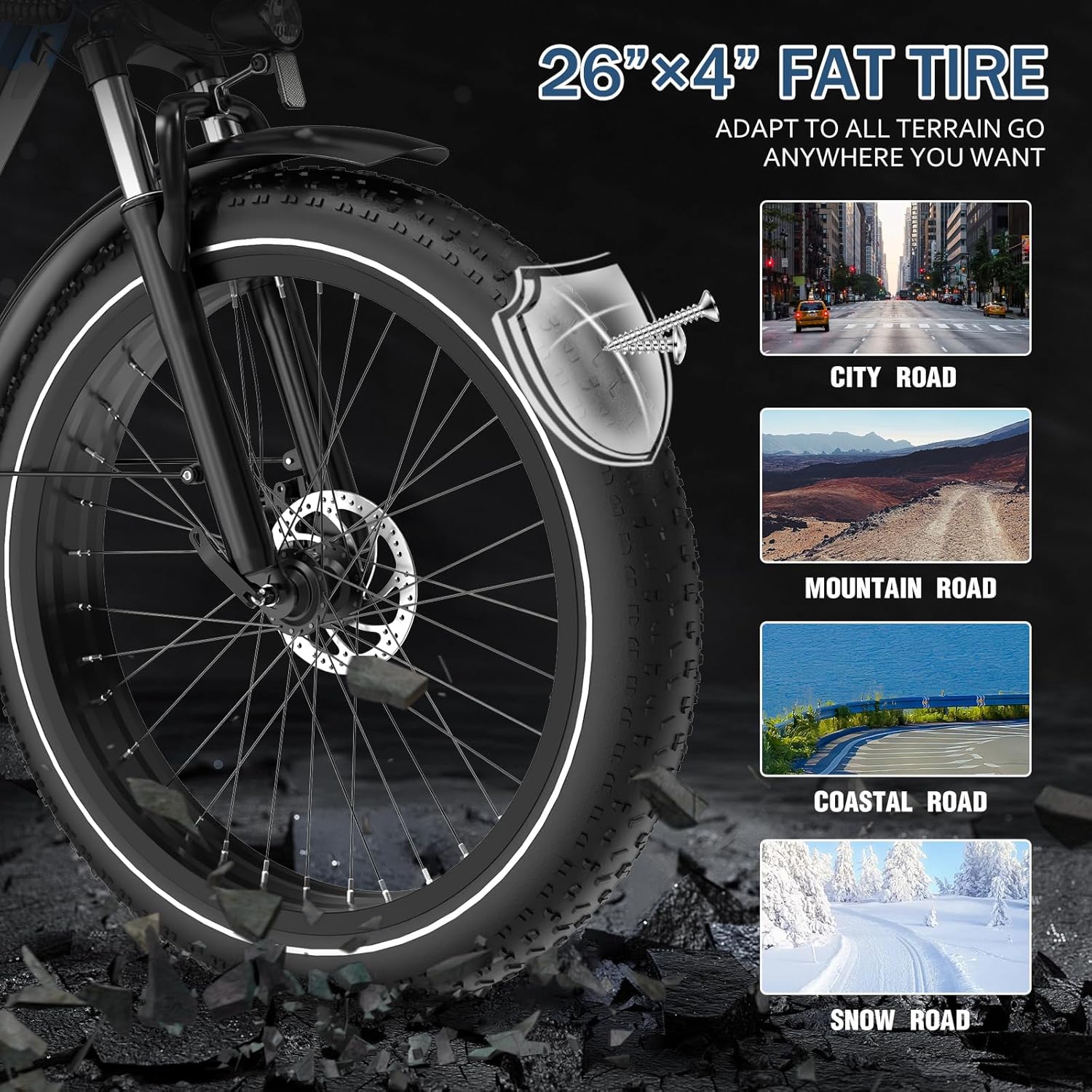 Notre vélo se distingue par son système de pneus à forte section, offrant une adhérence et une stabilité exceptionnelles sur une multitude de surfaces. Ces pneumatiques de 26 * 4.0 pouces absorbent efficacement les chocs, procurant une sensation de confort et de sécurité même sur les terrains les plus accidentés. La traction accrue garantit une maîtrise parfaite, que vous rouliez sur des sentiers rocailleux ou que vous traversiez des zones urbaines accidentées. Ce choix de conception robuste assure une durabilité accrue et une capacité à affronter des conditions extrêmes, rendant chaque sortie plus agréable et moins contraignante.