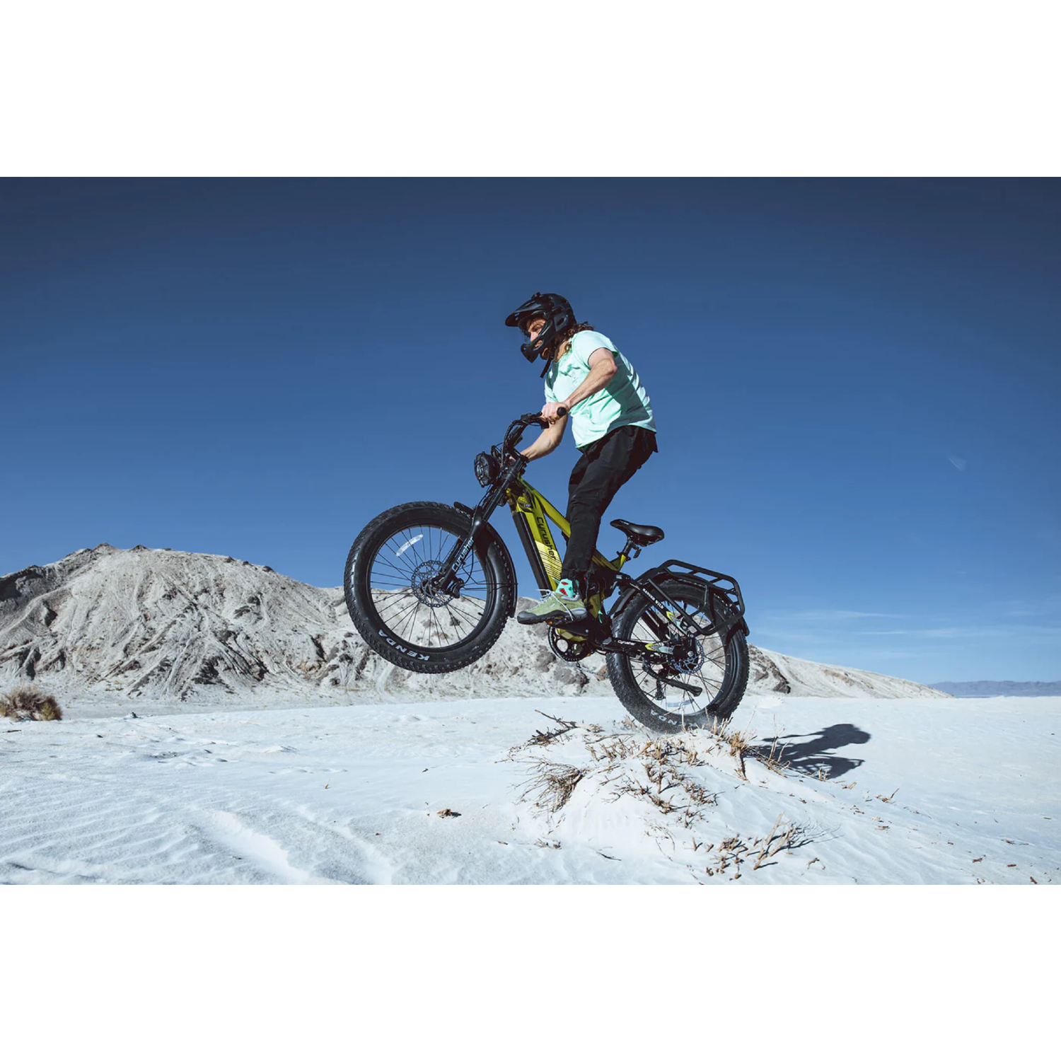 Notre système de transmission Shimano CUES ASLU40009RC à 9 vitesses offre une large gamme de développements, vous permettant d’adapter votre effort à tous les types de terrains. Que vous montiez des côtes abruptes ou que vous rouliez sur des chemins plats, les changements de vitesse sont fluides et fiables, améliorant votre efficacité et votre plaisir de conduite. Les pneus Kenda 26″ x 4″ résistants à la crevaison offrent une adhérence exceptionnelle et une durabilité accrue.