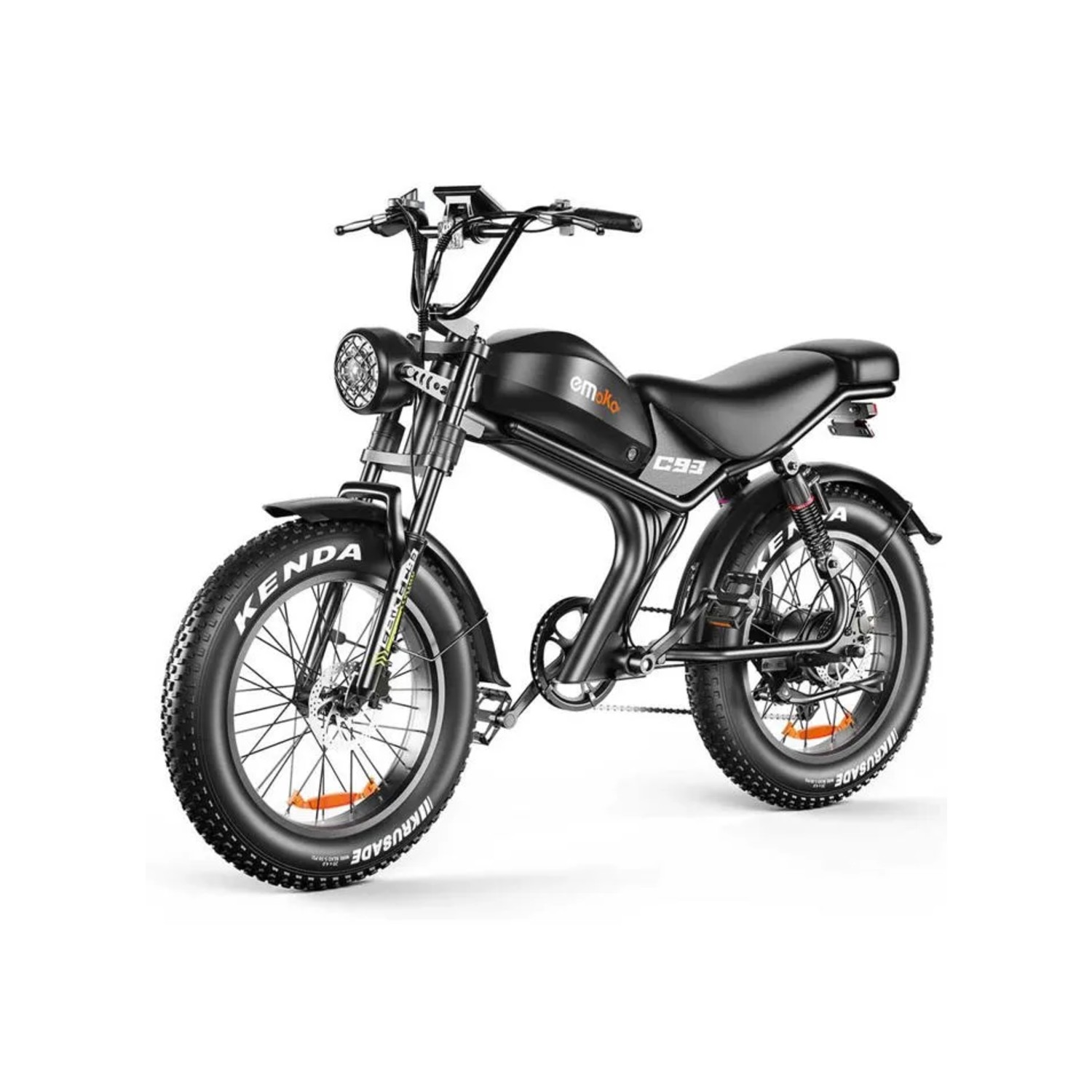 Équipée de pneus larges 20 x 4 pouces, notre Moto électrique puissante offre une adhérence accrue et une meilleure stabilité. Ces pneus sont adaptés aux surfaces planes et légèrement accidentées, permettant une conduite sécurisée sur asphalte et chemins légers.