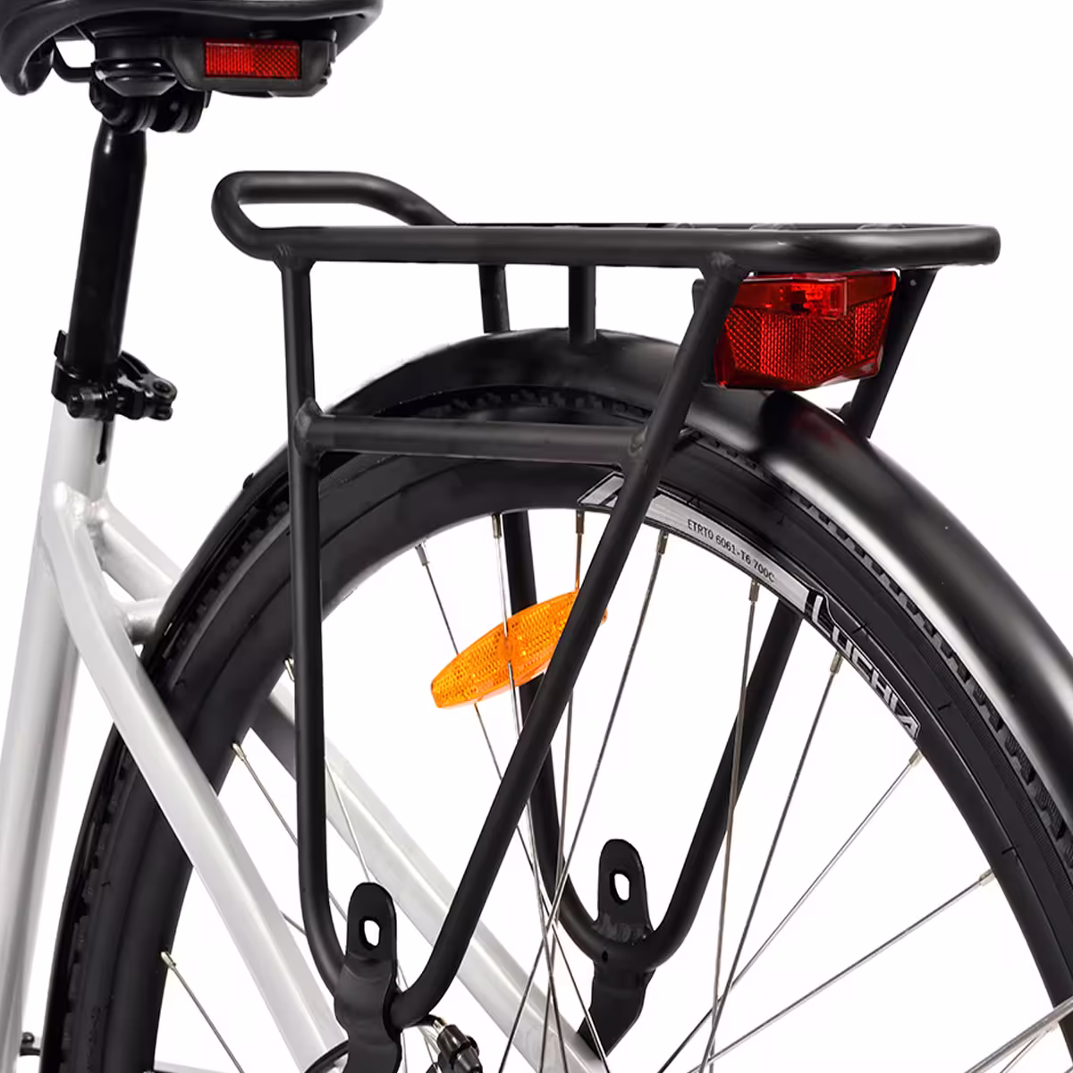 Notre VAE 29 pouces avec batterie intégrée inclut un éclairage à pile, garde-boues et fixation porte-bagage. Ces éléments augmentent la praticité et la sécurité de votre vélo pour un usage urbain quotidien.