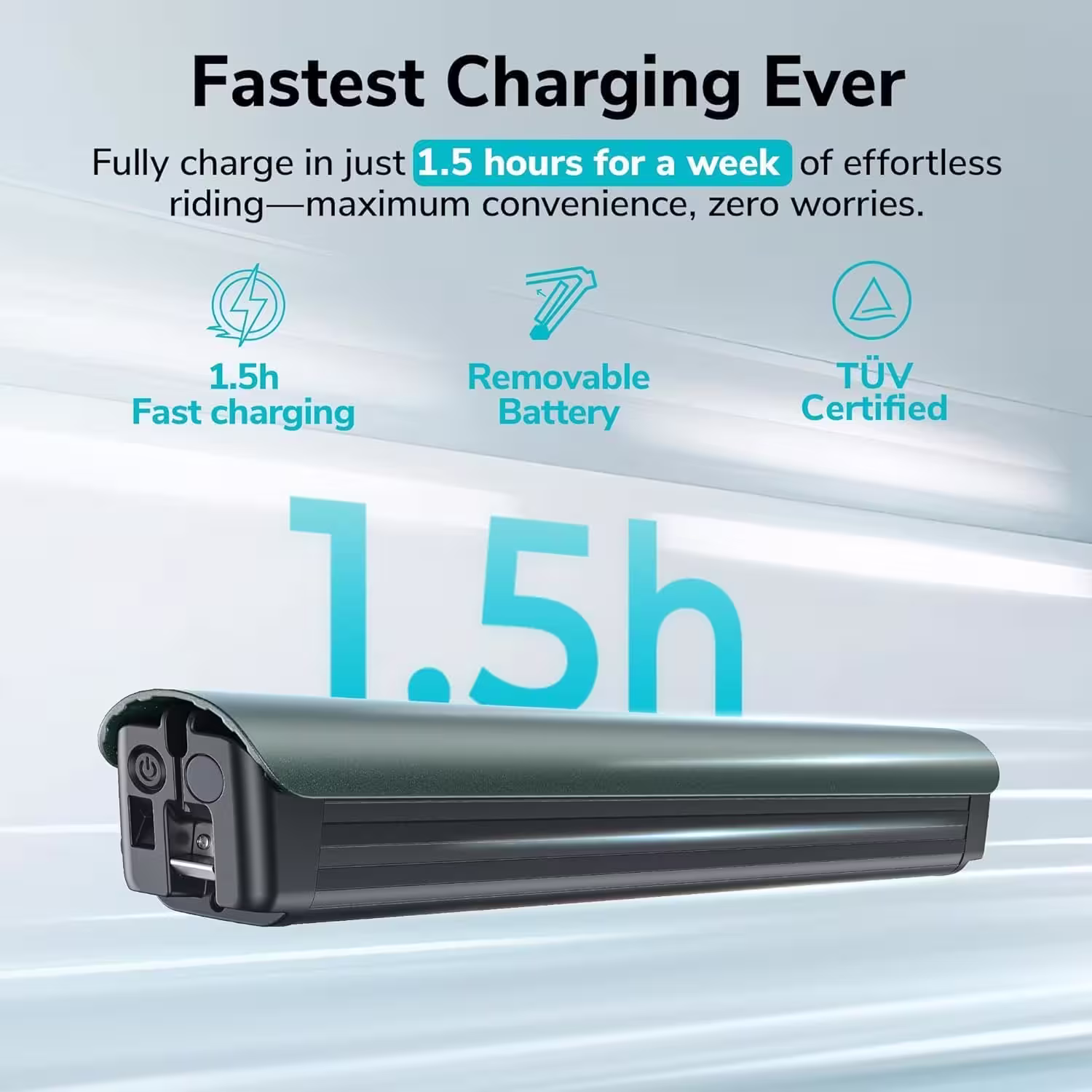 La batterie lithium-ion amovible de 36 V et 10 Ah offre jusqu’à 100 km d’autonomie en mode assistance minimal. La batterie peut être retirée facilement pour la recharge, offrant une flexibilité maximale et une utilisation confortable sans devoir déplacer le vélo entier.