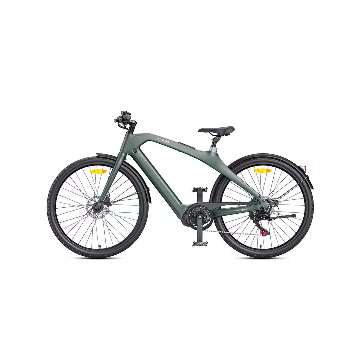 Ce modèle est équipé d’un moteur central sans balais de 250 W associé à un capteur de couple, offrant une assistance fluide et puissante. La transmission Shimano à 7 vitesses permet d’adapter l’effort en fonction des pentes et de la vitesse souhaitée, pour un pédalage efficace sur toute distance.