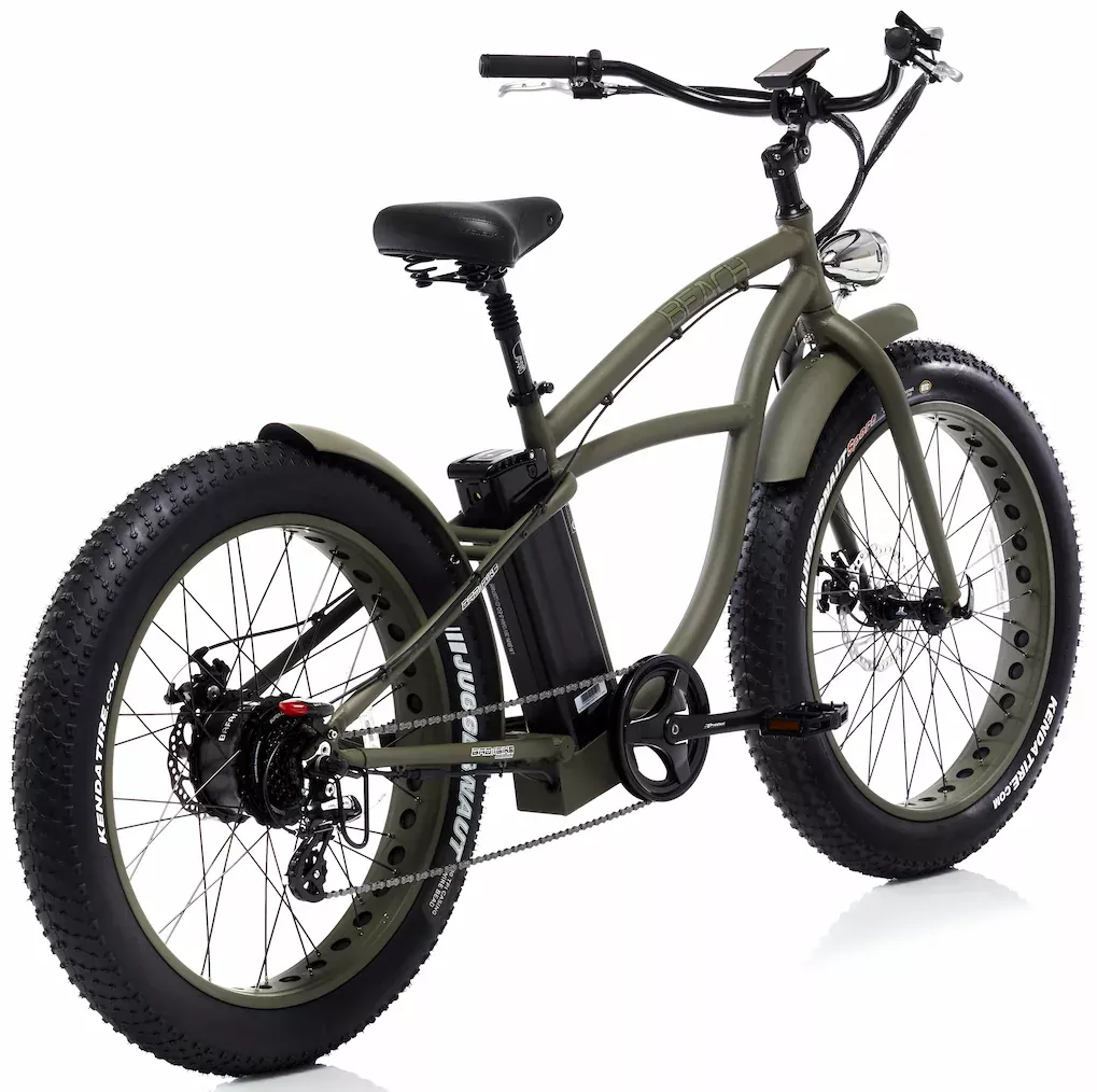 Le cadre sloping en aluminium est étudié pour reproduire la sensation d’un cruiser à moto, avec une barre traversante centrale qui rappelle un réservoir. La taille du cadre est adaptée aux utilisateurs mesurant entre 1,65 m et 1,90 m, offrant un confort optimal tout en maintenant un contrôle parfait sur le vélo.