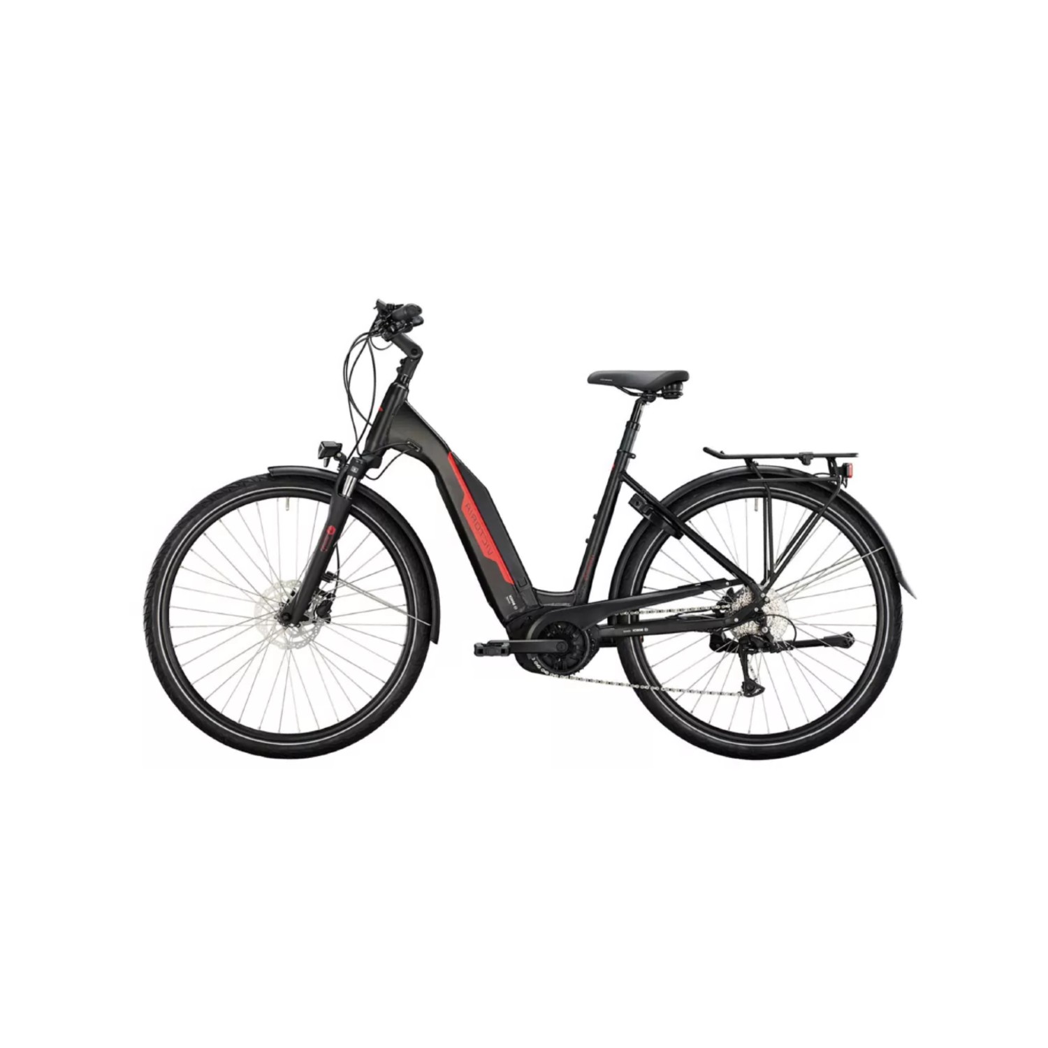 Le VAE Trekking haut de gamme est équipé d’un système d’éclairage LED puissant à l’avant et à l’arrière, d’un porte-bagage arrière compatible MIK pour transporter vos effets personnels, et d’un garde-chaîne complet pour plus de sécurité. Les garde-boues enveloppants et la béquille latérale renforcent la praticité et la stabilité lors des arrêts.