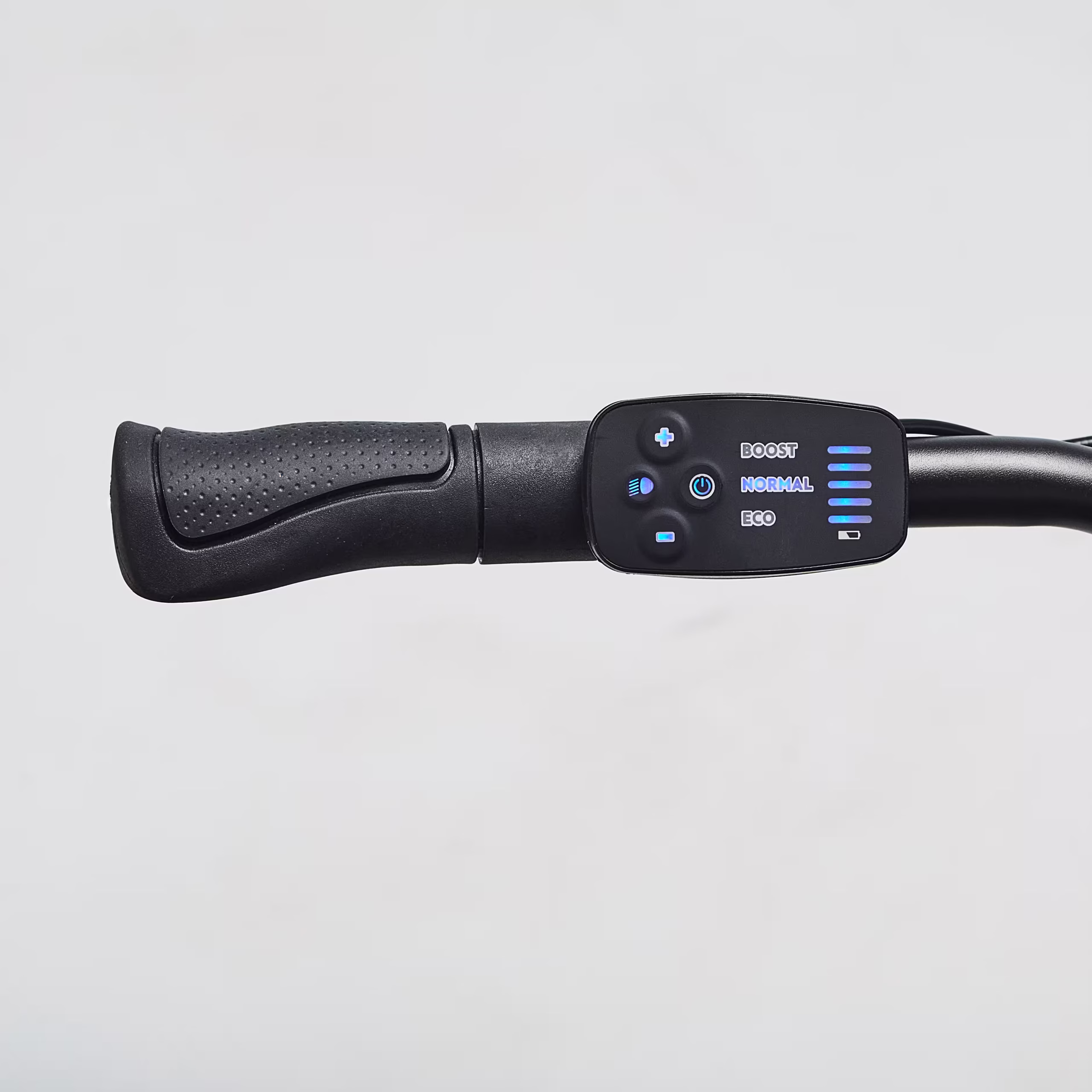 L’autonomie est un atout majeur de notre solution de transport électrique. Équipé d’une batterie amovible de 378 Wh, dotée de cellules lithium-ion LG ou Samsung, notre vélo vous offre jusqu’à 70 km de liberté en mode éco. Trois modes d’assistance sont disponibles, vous permettant d’adapter la puissance du moteur à vos besoins spécifiques : un mode doux pour les longues balades, un mode modéré pour un équilibre parfait, et un mode « Boost » pour les montées les plus exigeantes. La batterie est sécurisée par clé et peut être rechargée aussi bien sur le vélo qu’une fois retirée, offrant une flexibilité appréciable. La gestion de l’énergie est facilitée par un écran LED rétroéclairé, affichant l’autonomie restante via un curseur LED, garantissant une visibilité optimale de jour comme de nuit.