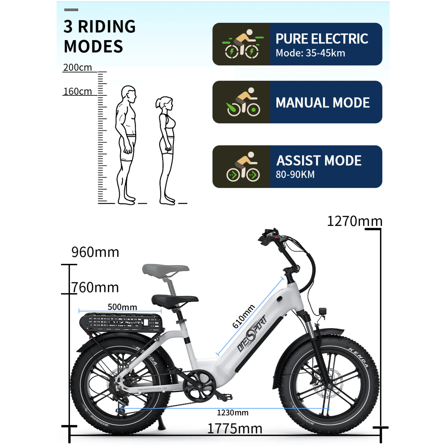 Le cadre de ce vélo est conçu pour accueillir une charge maximale de 120 kg. Bien qu’il n’y ait pas de tailles de cadre spécifiques mentionnées, notre modèle est optimisé pour s’adapter à une large gamme d’utilisateurs grâce à sa conception générale et ses ajustements possibles. Nous recommandons aux utilisateurs de se référer aux dimensions standards des vélos pliables de 20 pouces pour évaluer leur confort et leur posture de conduite.