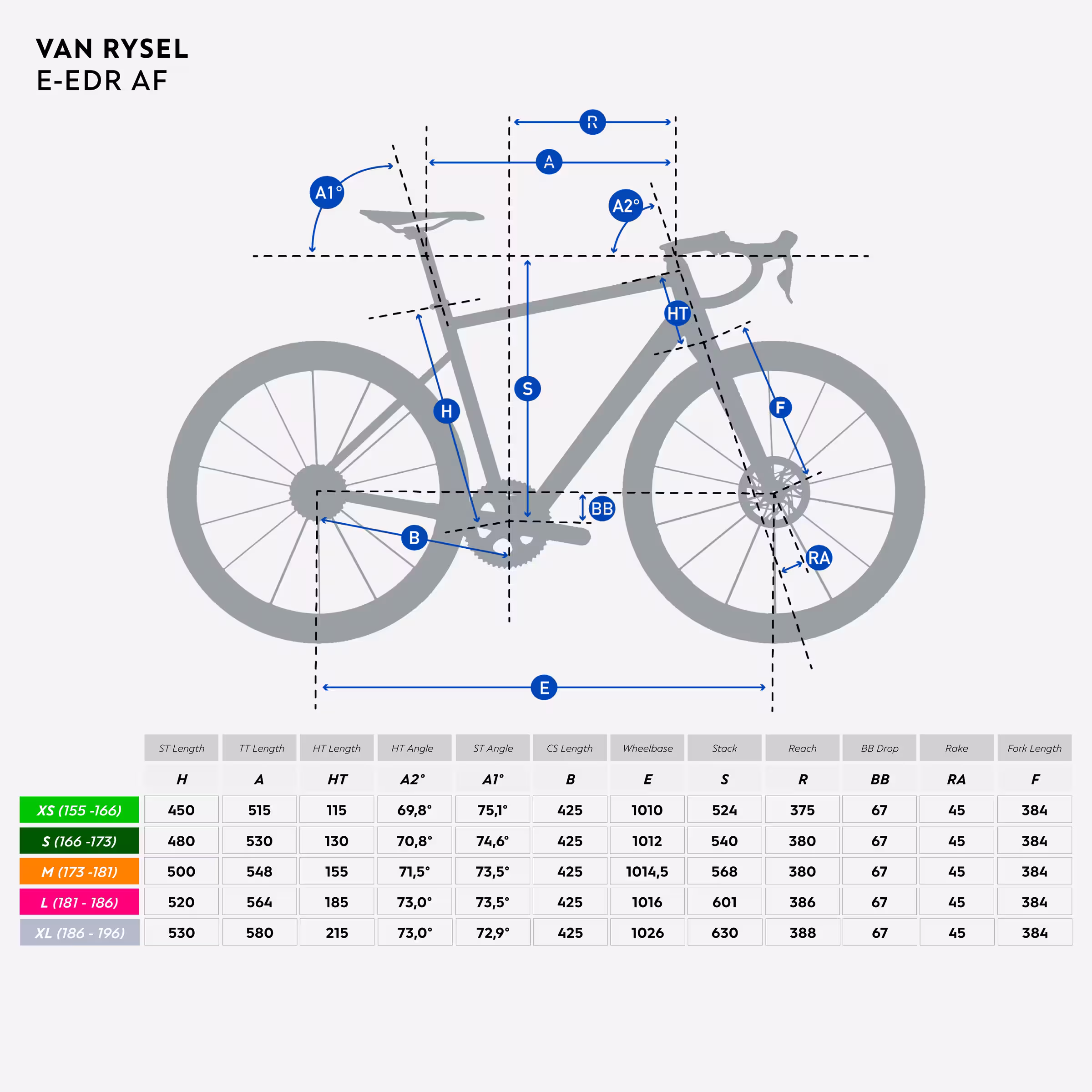 Notre vélo à assistance intégrée pour la route est proposé en plusieurs tailles, de XS à XL. En général :