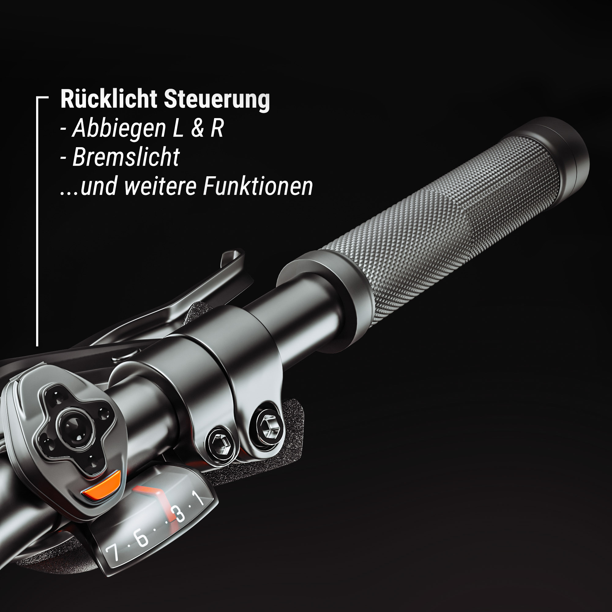 Le Vélo de route électrique avec LED Osram dispose de phares avant et arrière intégrés, avec fonction clignotante. L’écran central LCD protège la lisibilité et permet la connexion via Bluetooth, tout en fournissant des informations sur l’autonomie, la vitesse et le niveau d’assistance.