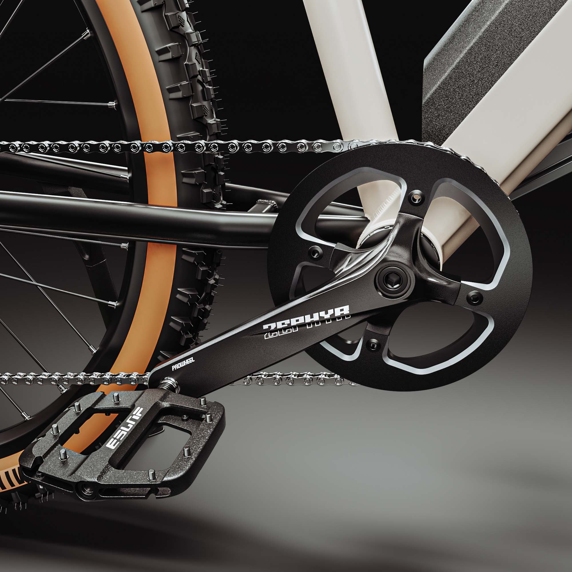 Le Velo électrique avec moteur 65 Nm utilise un moteur Bafang H610 sans balais, offrant 250 W de puissance nominale. Son couple de 65 Nm, combiné au mode Turbo Boost, permet de maintenir des performances constantes sur des pentes et terrains variés, tout en conservant une conduite naturelle et fluide.