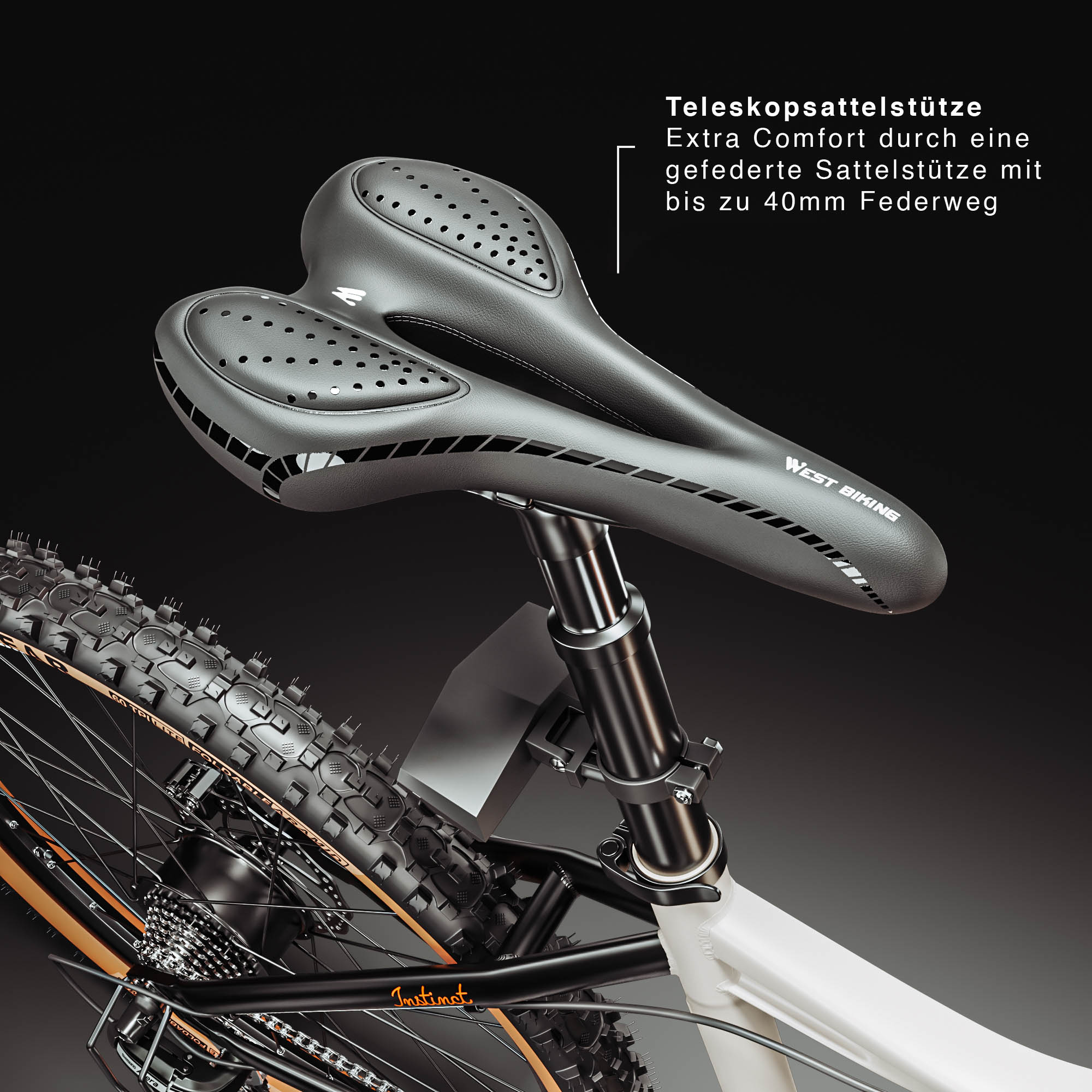 Notre vélo électrique route avec cadre aluminium 29 pouces dispose d’un cadre de 51 cm adapté à des utilisateurs mesurant entre 165 cm et 190 cm. La géométrie offre une position de conduite confortable et stable. La selle ergonomique avec rembourrage en gel et cuir synthétique ainsi que la tige de selle télescopique contribuent au confort sur les longues distances.