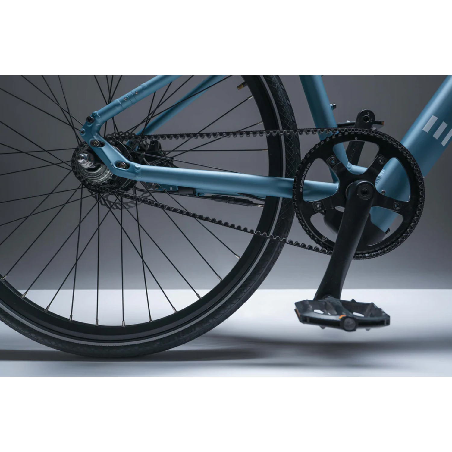 Ce modèle intègre une bicyclette électrique à entraînement par courroie carbone, un système silencieux et sans entretien qui remplace les chaînes traditionnelles. Cette technologie garantit une expérience de conduite plus fluide, plus propre et durable, idéale pour les déplacements quotidiens et les cyclistes exigeants.