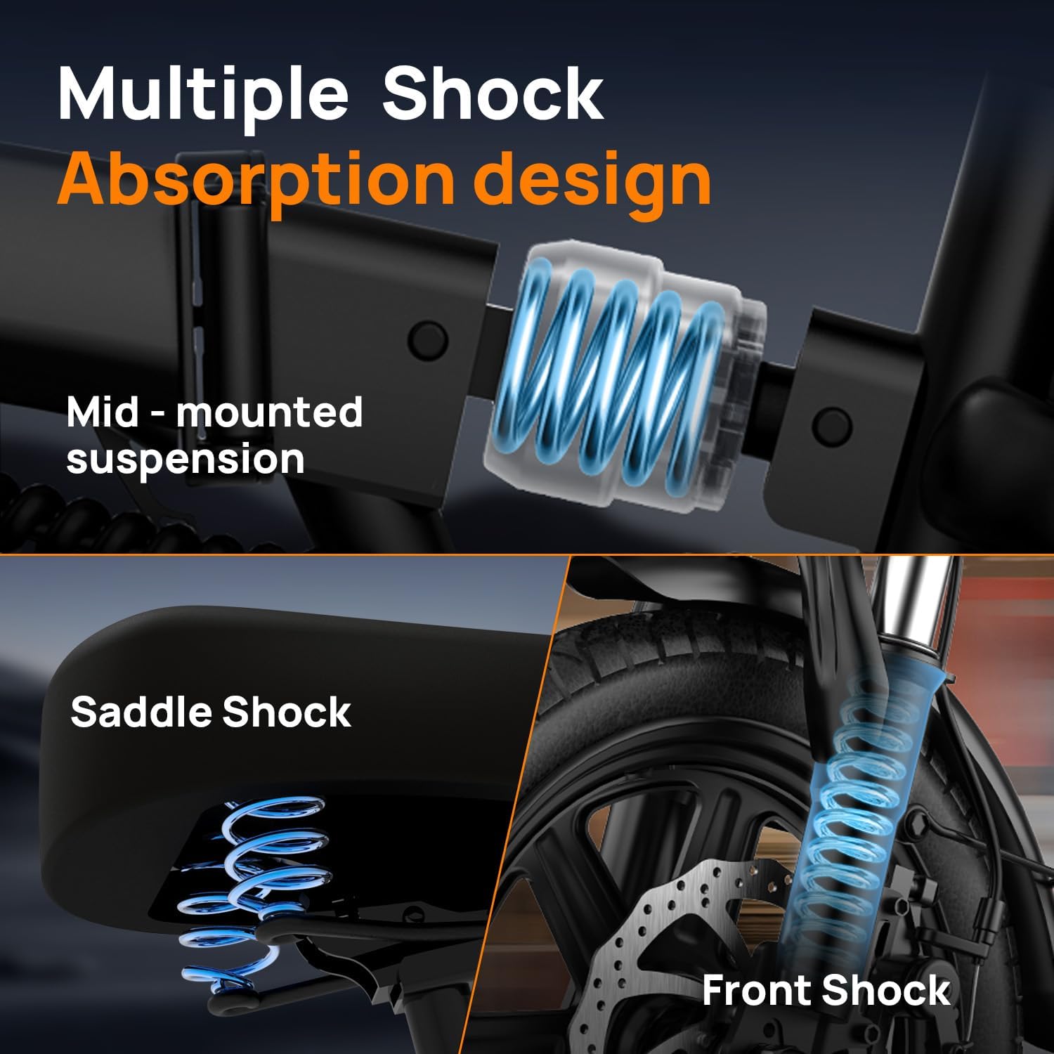 La sécurité et le confort de l’utilisateur sont au cœur de la conception de notre vélo. Il intègre une double suspension et un amortisseur de selle qui réduisent efficacement les vibrations, assurant une conduite souple même sur les terrains accidentés. La selle et la potence sont réglables, vous permettant de personnaliser la hauteur du guidon et de l’assise pour une position de conduite idéale et une ergonomie optimale. La présence d’un double frein à disque renforce également la sécurité.