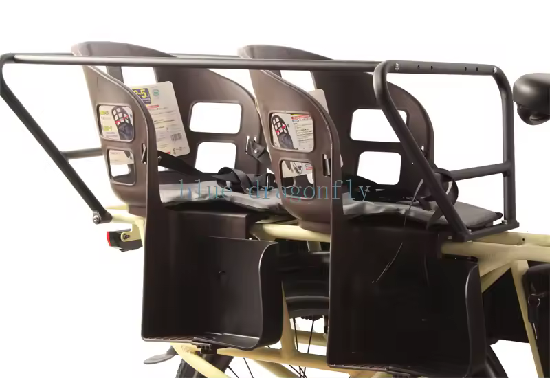 Grâce à son cadre en fibre de carbone, ce vélo allie solidité et légèreté. Son espace dédié aux enfants permet de les transporter en toute sécurité, avec un design ergonomique pensé pour assurer stabilité et confort durant le trajet.