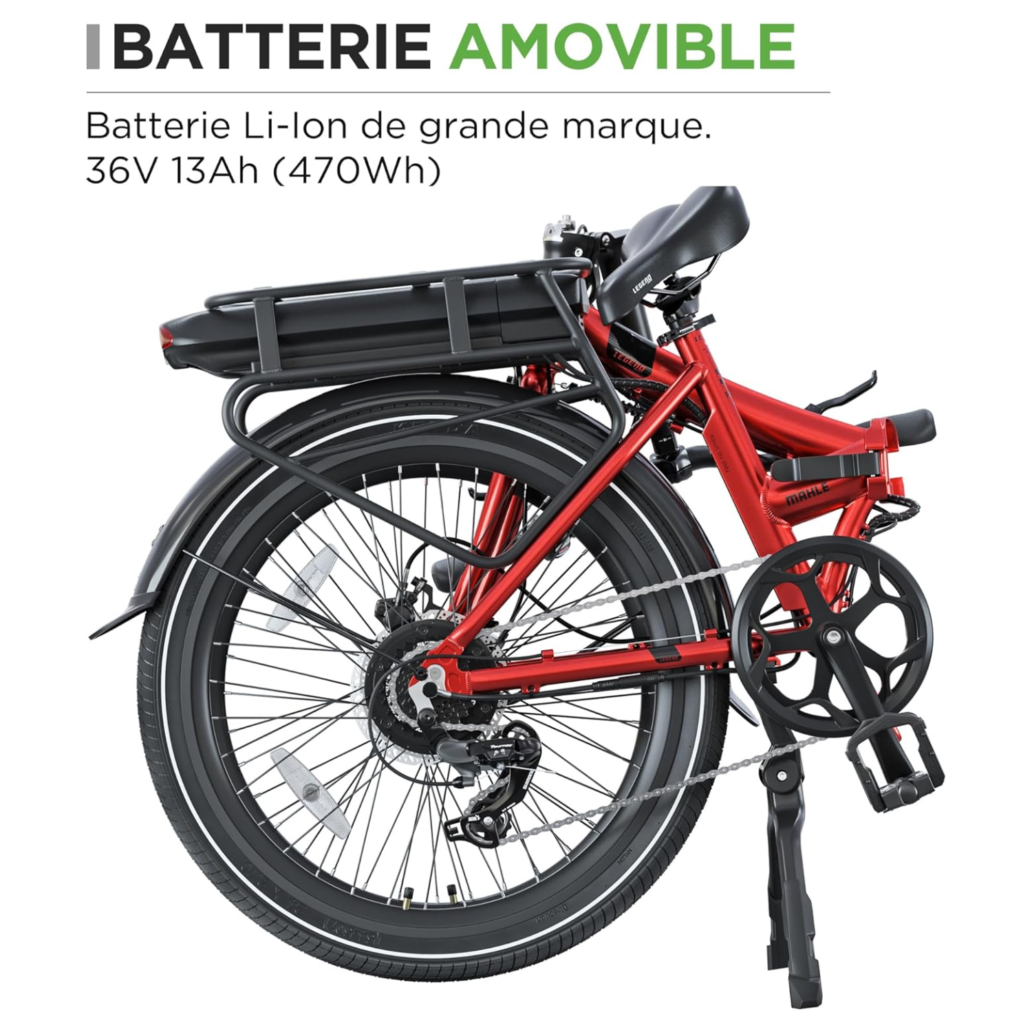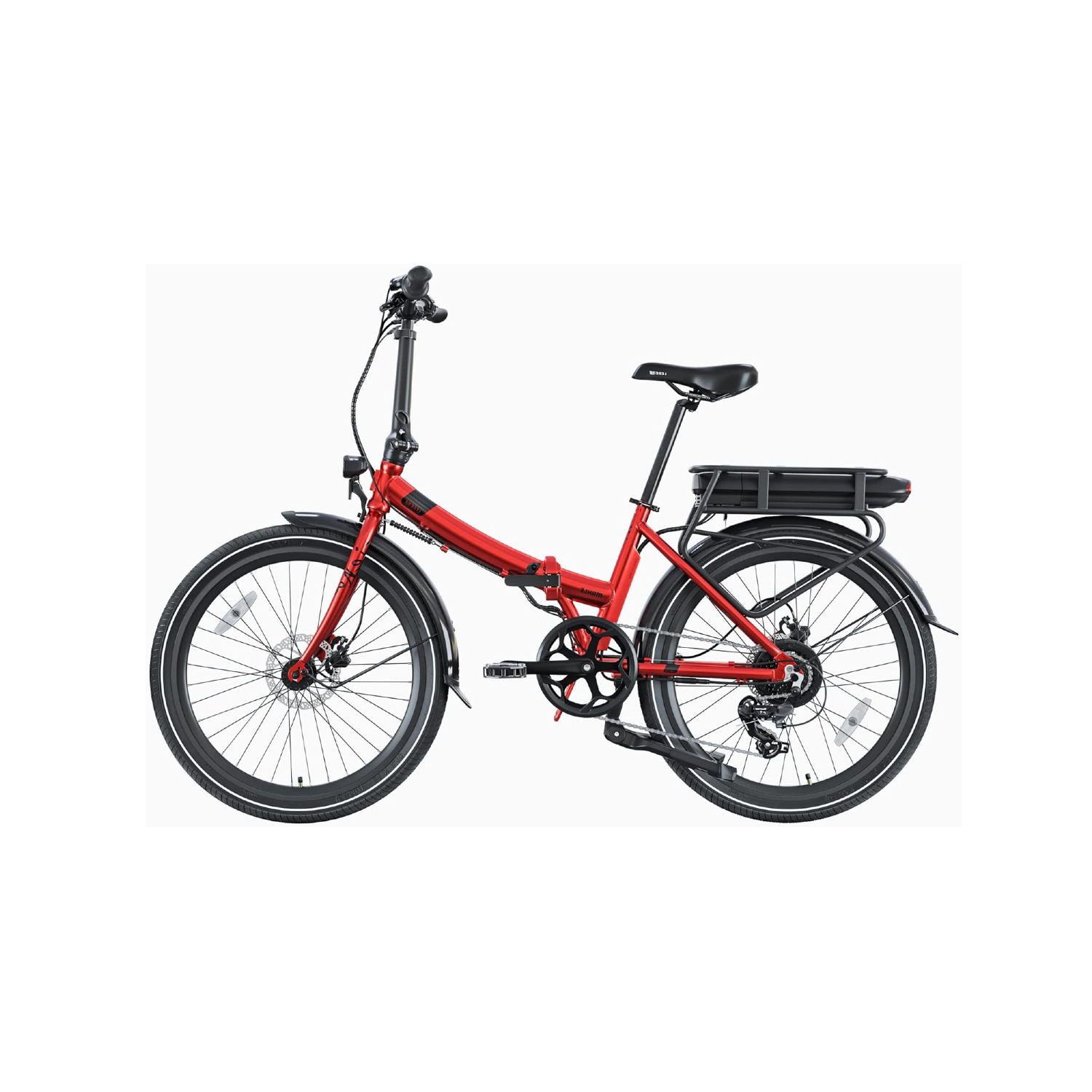 Livré avec son chargeur, sa batterie amovible et ses éclairages puissants LED, ce vélo compact motorisé à roues 24 pouces est prêt à vous accompagner partout. Il intègre également un porte-bagages compatible avec des accessoires comme un siège enfant (jusqu’à 27 kg), un panier ou des sacoches pour vos courses ou affaires de travail.