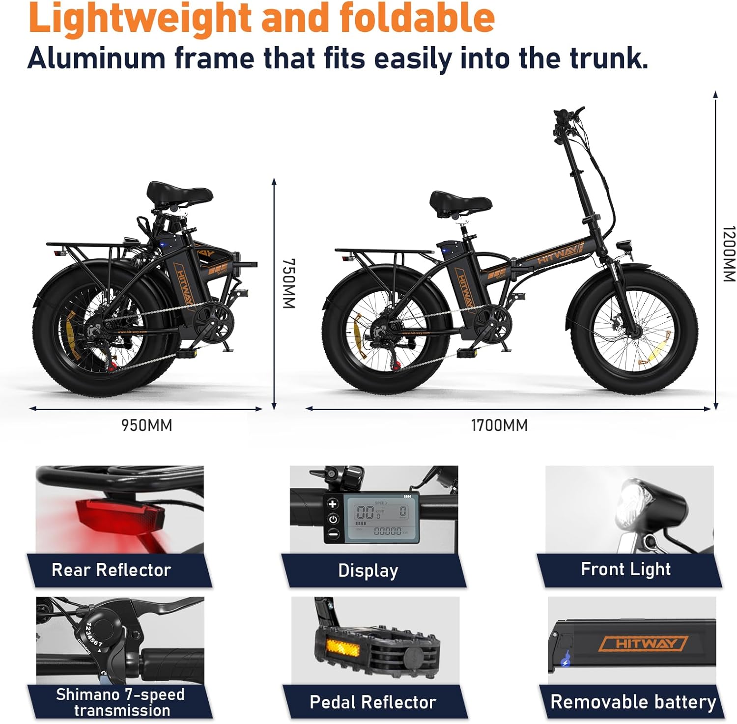 Le cadre de notre vélo électrique pliable est conçu pour s’adapter à une large gamme d’utilisateurs. Le guidon et la selle sont entièrement réglables en hauteur, permettant ainsi d’ajuster le vélo à votre morphologie et à votre style de conduite préféré. Ces ajustements personnalisables assurent une position ergonomique et confortable pour les adultes de différentes tailles. Il est idéal pour les cyclistes souhaitant un vélo adaptable, offrant une expérience de conduite stable et agréable.