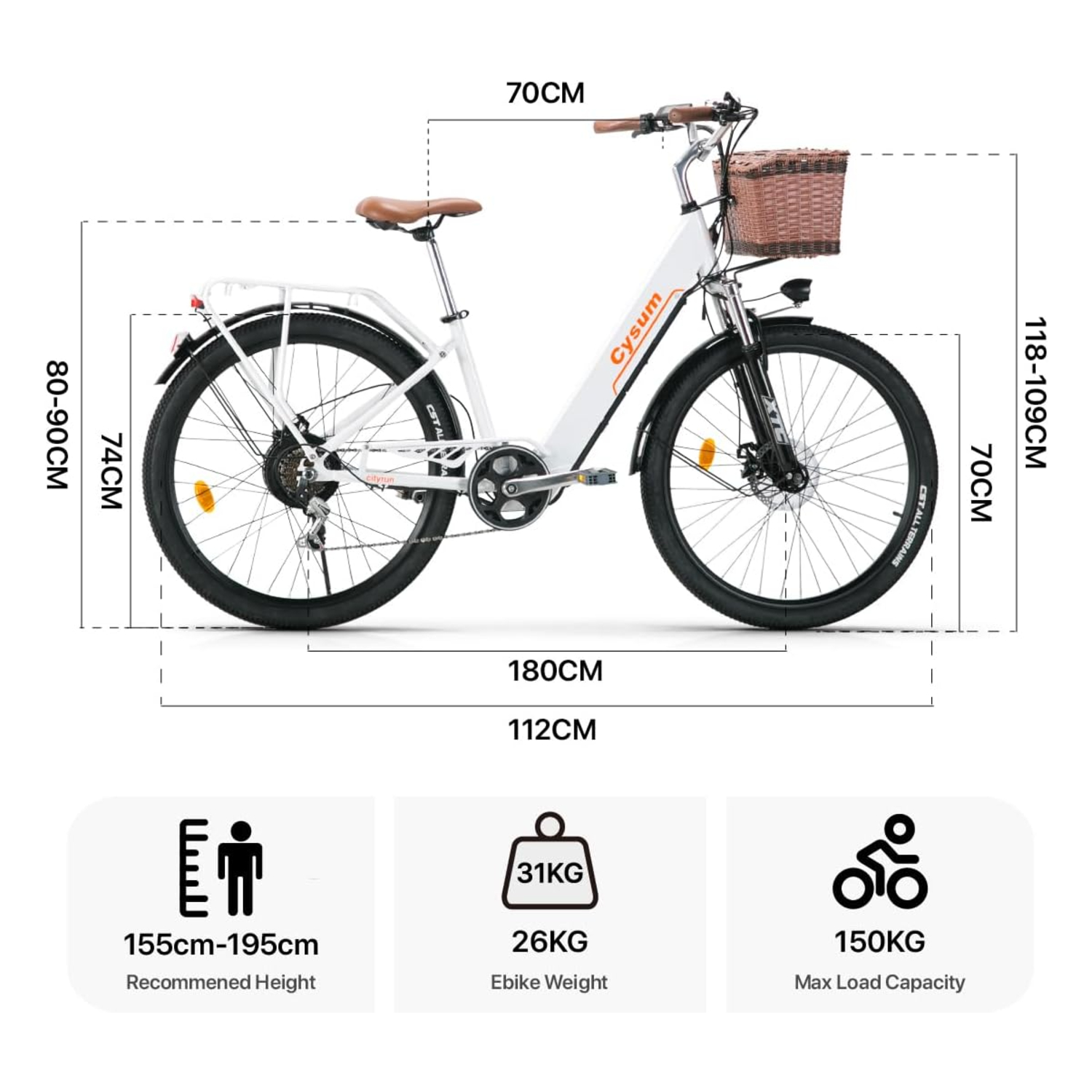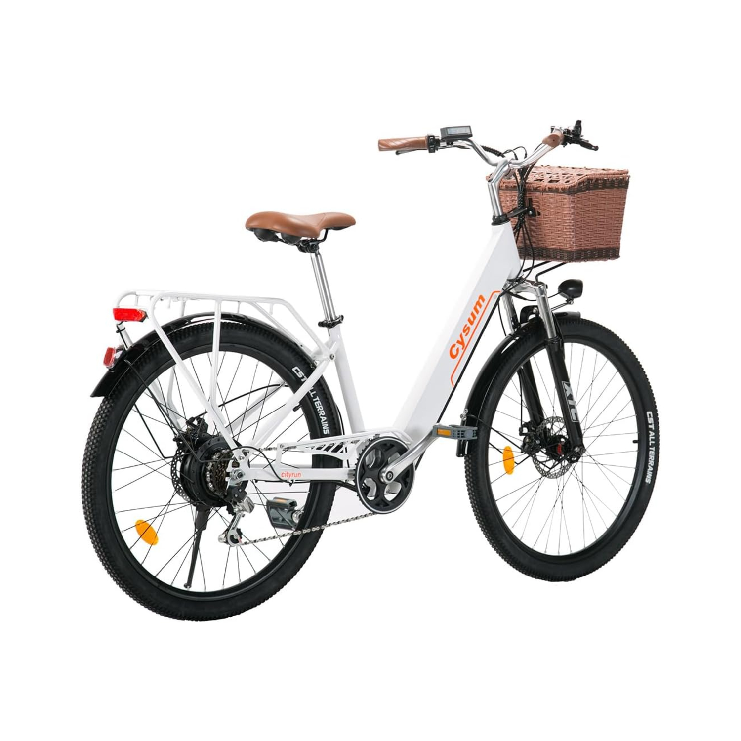 Notre vélo urbain à assistance électrique pour femme comprend un porte-bagages arrière robuste et un panier avant fonctionnel, facilitant le transport d’effets personnels ou de petites charges. Des garde-boue et un carter de chaîne sont intégrés pour une conduite propre et adaptée à toutes les conditions.