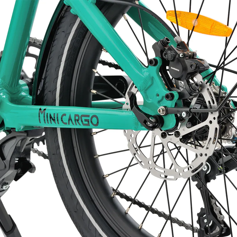 Le vélo cargo électrique à assistance frontale intègre des freins hydrauliques à disque, garantissant un contrôle précis et une sécurité renforcée lors du transport de charges importantes. Le cadre en aluminium renforcé assure une rigidité optimale, tandis que la position de conduite ergonomique favorise un confort durable, idéal pour un usage quotidien en milieu urbain.
