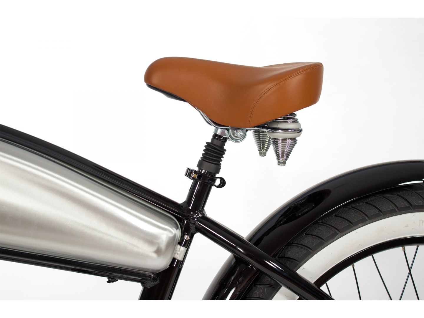 Notre selle a été pensée pour les longues sorties. Large, rembourrée en mousse double densité, avec suspensions à ressorts hélicoïdaux, elle réduit considérablement les vibrations et la fatigue. Vous profitez de chaque trajet dans un confort absolu.