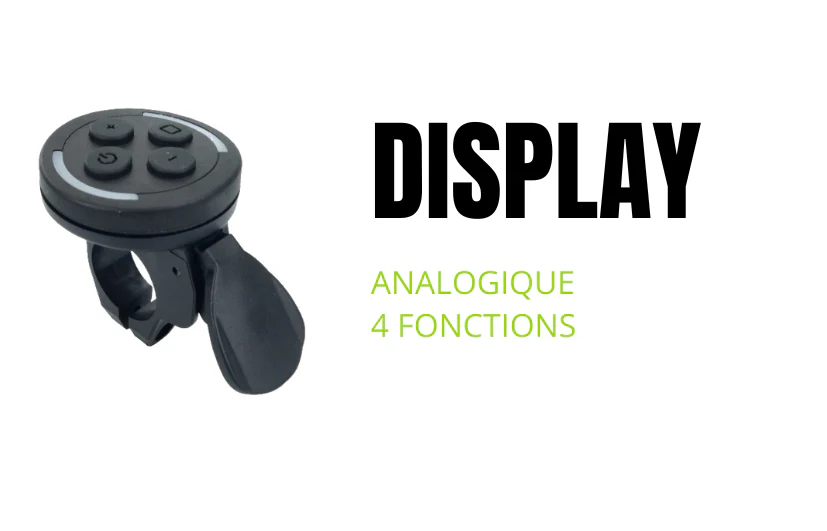 Type d’écran : Display analogique à 4 boutons, affichage niveaux d’assistance, batterie et commande d’éclairage