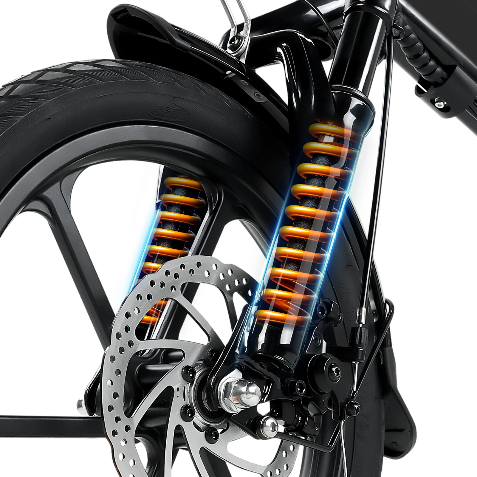 Avec sa suspension avant haut de gamme et son amortisseur de selle intégré, ce deux-roues à assistance compacte offre une absorption remarquable des chocs. Qu’il s’agisse de pavés urbains, de bosses ou de chemins irréguliers, la conduite reste fluide et maîtrisée. Le confort est au cœur de l’expérience, même lors des longues distances.