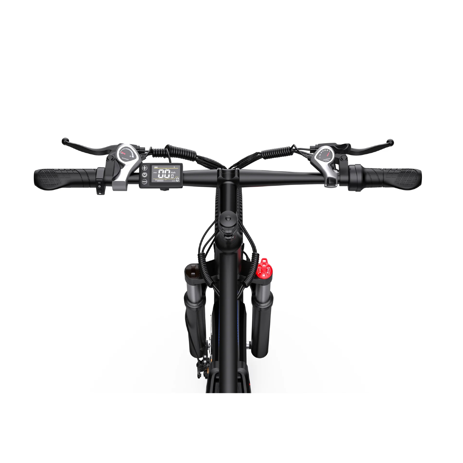 Conçu avec un cadre en alliage d’aluminium, ce vélo est à la fois solide et léger (seulement 26 kg). Son système d’amortissement avant absorbe les chocs pour une conduite plus stable, même sur les sentiers accidentés. De plus, le porte-bagages arrière intégré, supportant jusqu’à 60 kg, vous permet de transporter vos effets personnels en toute sécurité.