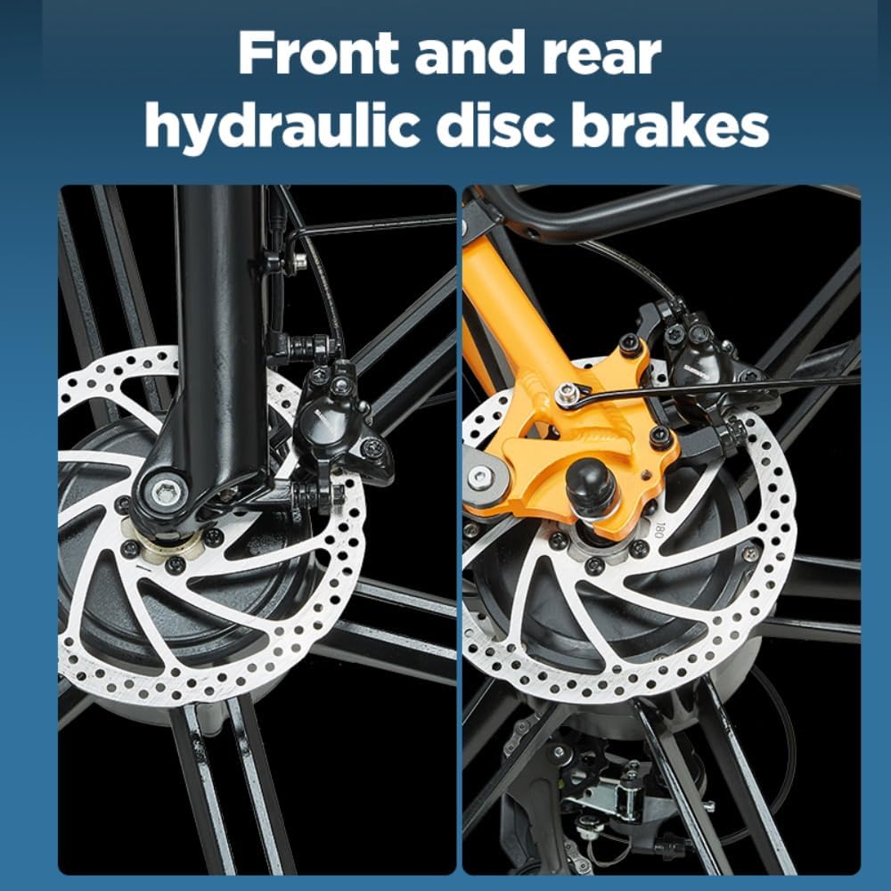 Grâce à ses freins hydrauliques SHIMANO à disque, notre vélo à propulsion assistée sur deux roues garantit une sécurité maximale. La coupure automatique de la puissance lors du freinage permet un contrôle total en descente comme en situation d’urgence. Vous profitez ainsi d’une conduite plus sûre, quelles que soient les conditions.