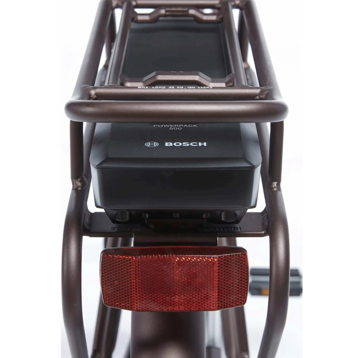 - La batterie 500 Wh atteint jusqu’à 100 km, selon le poids transporté et le niveau d’assistance.