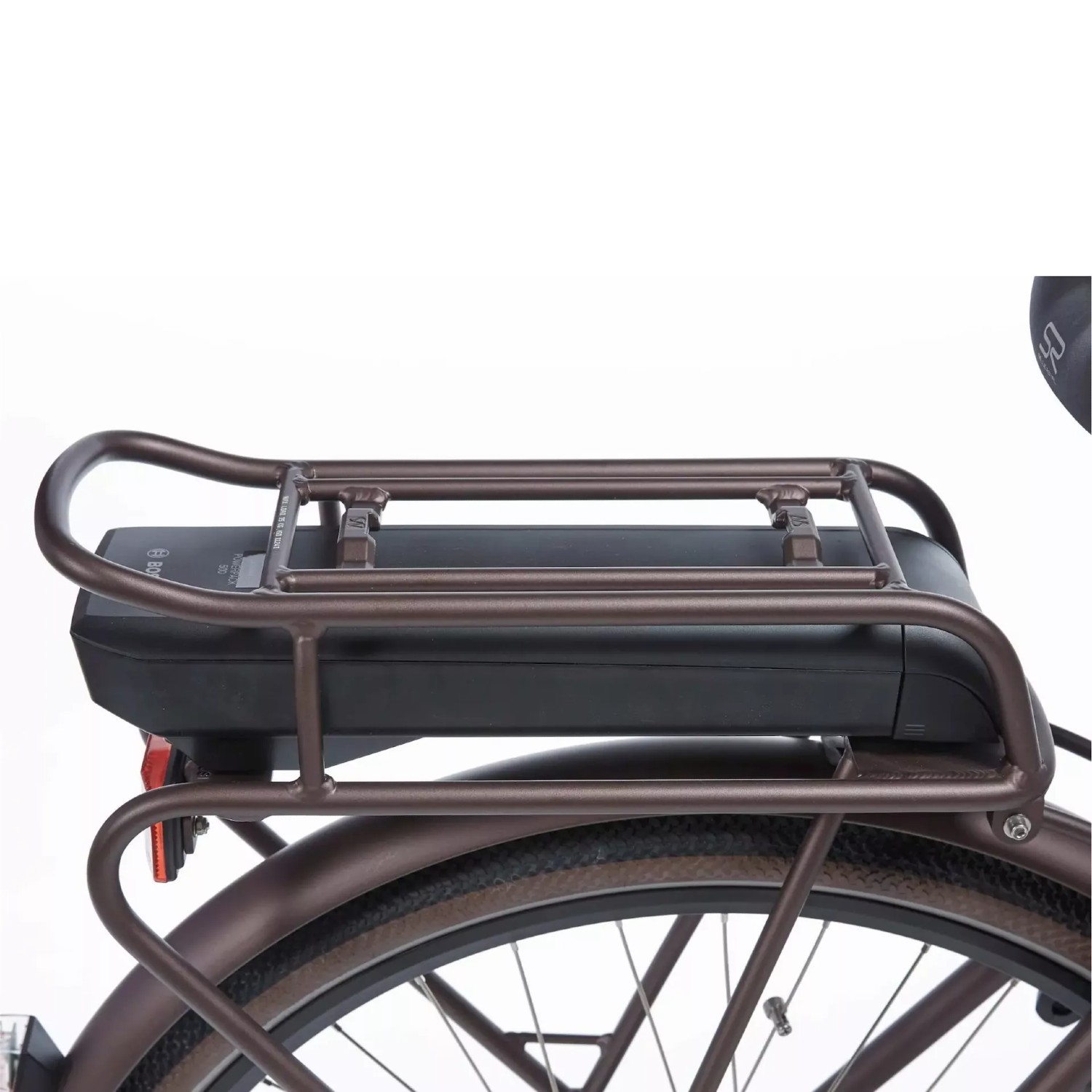 La batterie se situe sur le porte-bagages, facilitant son retrait et sa recharge à domicile.