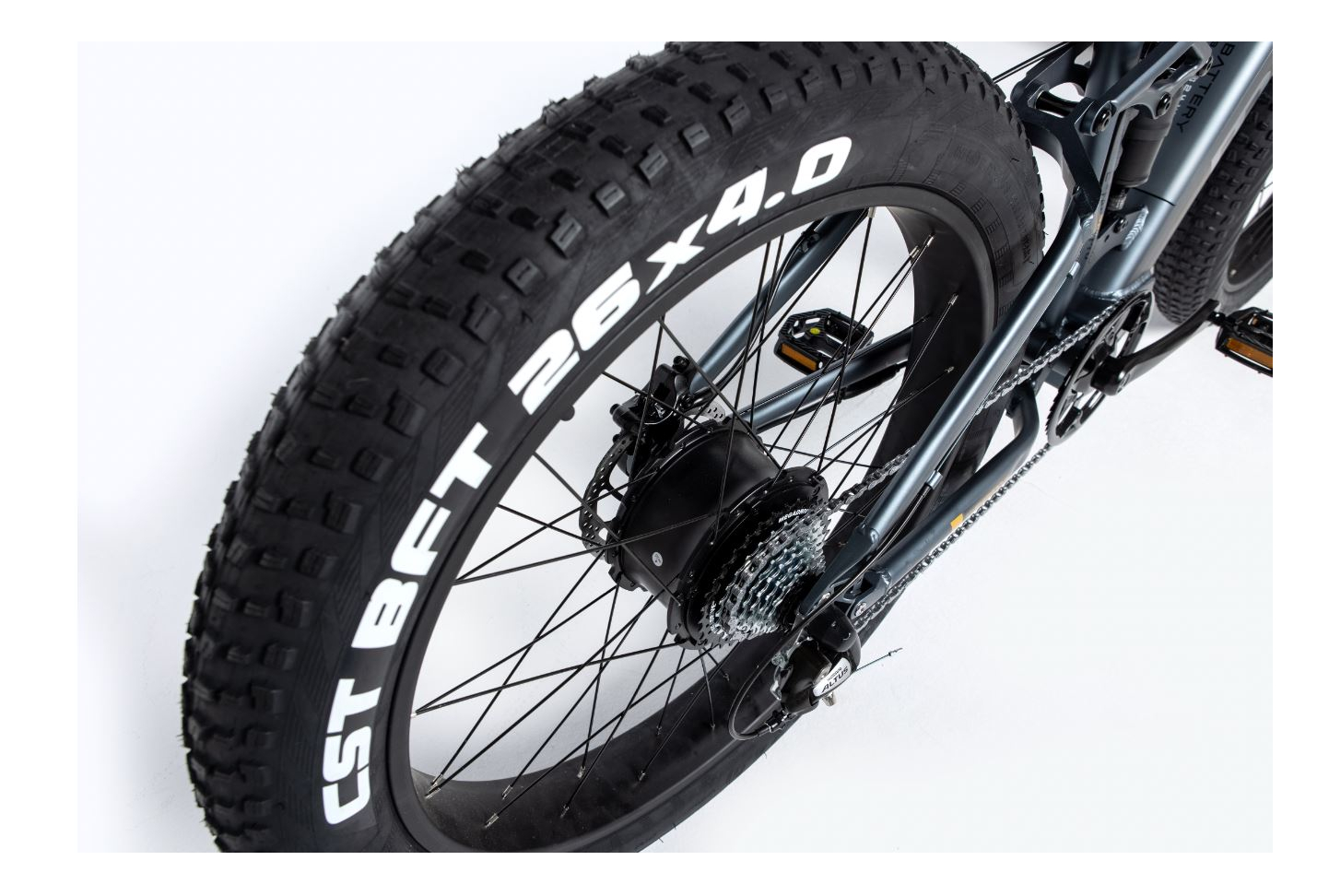 Avec des roues extra larges de 26 x 4.0, ce vélo électrique se distingue par sa capacité à maintenir une excellente stabilité sur des surfaces peu denses telles que le sable, la boue ou même la neige. Sa structure robuste permet de surmonter des obstacles et de naviguer avec aisance dans des environnements complexes, offrant ainsi une liberté de mouvement que peu de vélos classiques peuvent offrir.