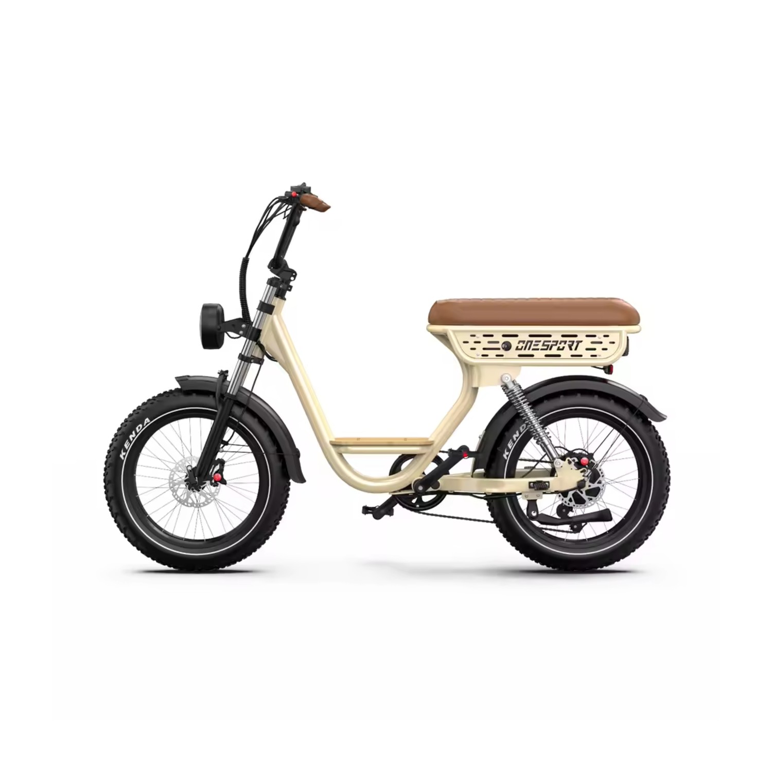 Notre vélo électrique double confort pour femmes est équipé de pneus larges de 20*4 pouces. Cette dimension offre une excellente adhérence sur route et chemins urbains, tout en amortissant les irrégularités du terrain. Les pneus larges contribuent à la stabilité du vélo lorsque vous transportez un passager supplémentaire.