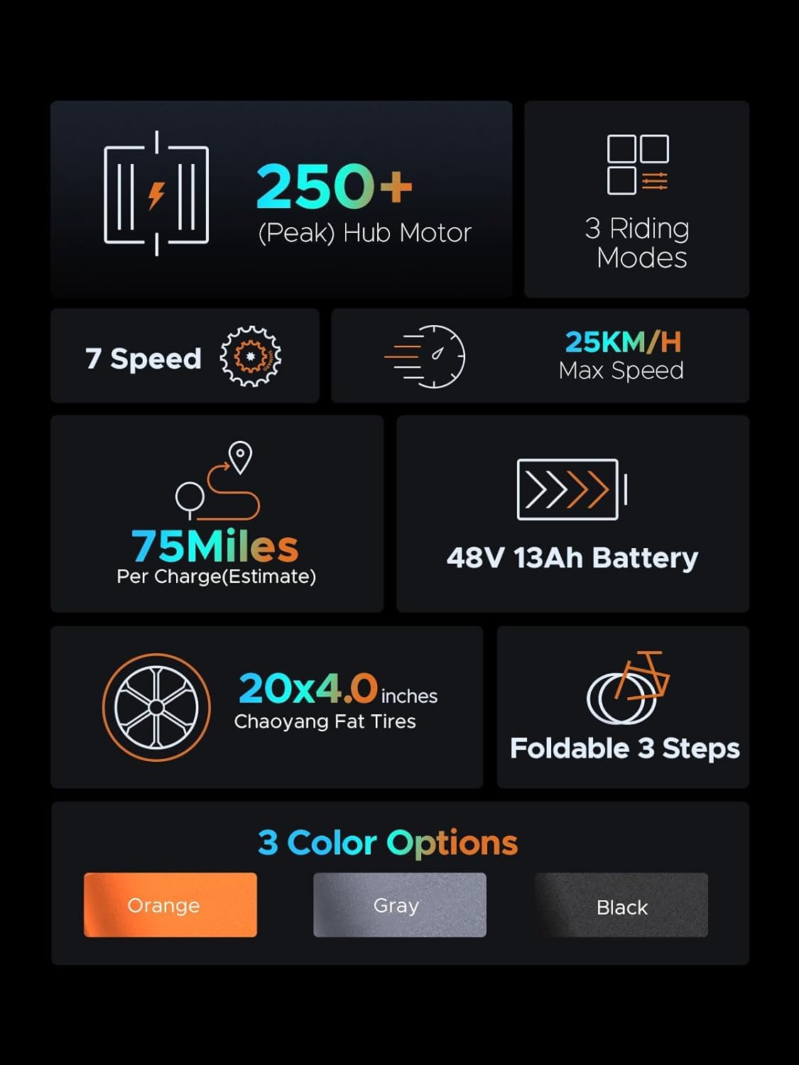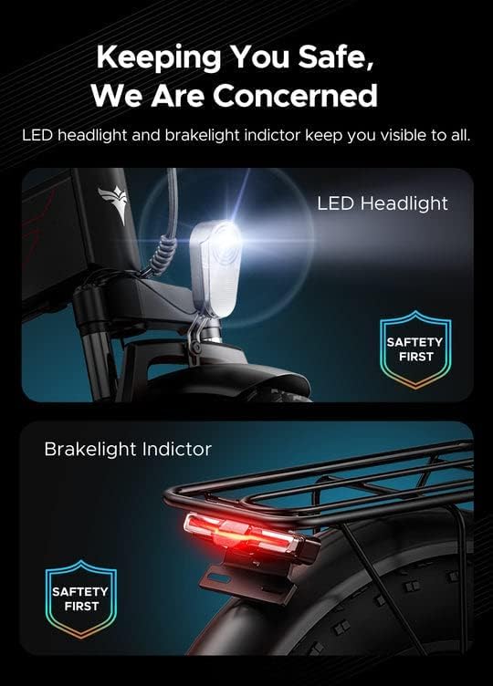 Ses pneus épais de 20’’ x 4.0’’ garantissent une adhérence parfaite, même sur les terrains difficiles comme les plages, la neige ou les sentiers accidentés. Ils assurent une meilleure stabilité et réduisent les risques de crevaison, pour une expérience de conduite sécurisée et confortable.