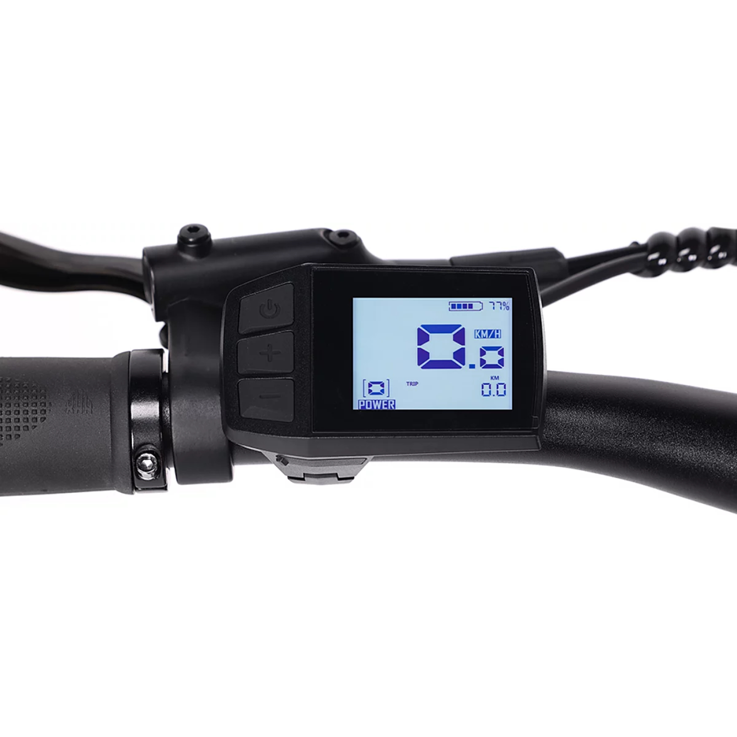 Notre vélo à moteur intégré dans la transmission centrale est équipé d’un écran LCD intelligent qui affiche en temps réel la vitesse, le niveau de batterie, la distance parcourue et bien plus. Il permet de choisir entre 5 niveaux d’assistance, de 12 à 25 km/h, selon votre besoin d’effort. Un mode marche à 6 km/h est également disponible pour les moments où vous devez pousser le vélo.