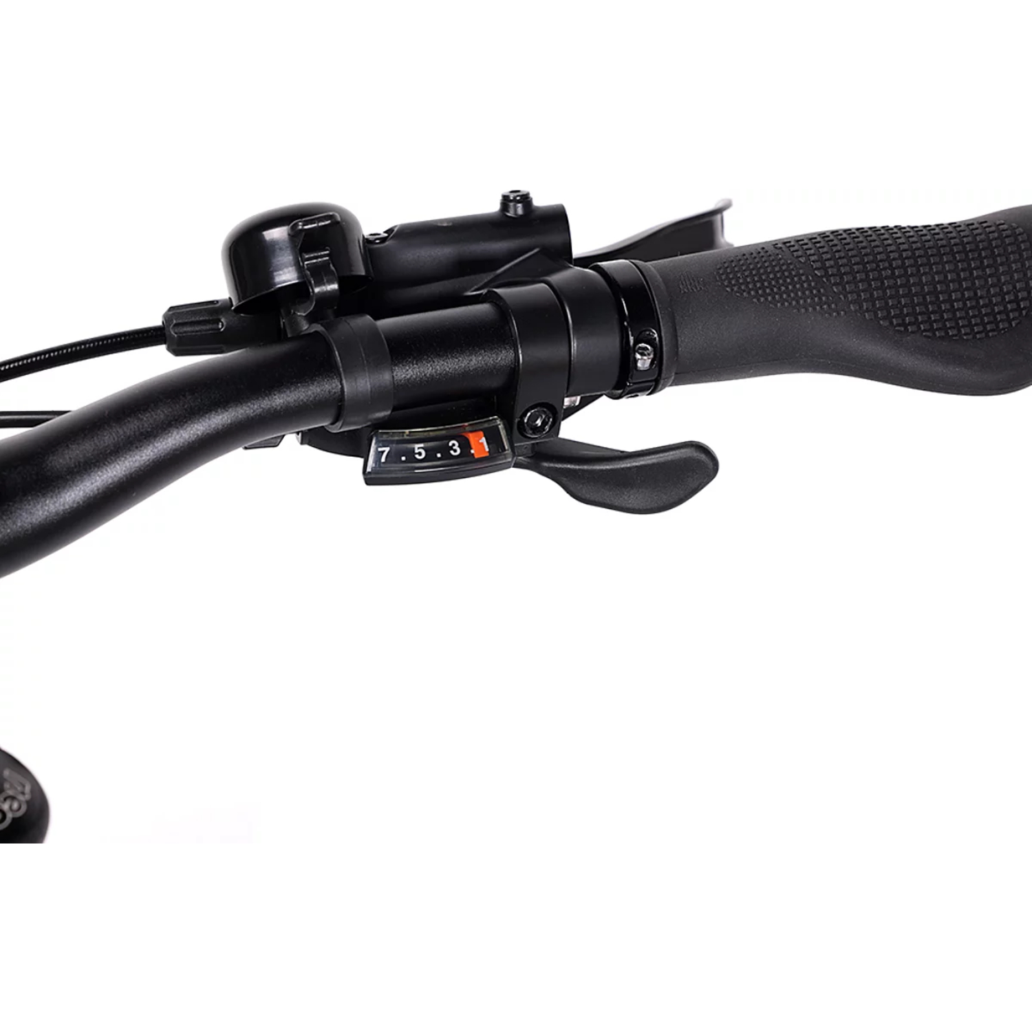 Grâce à ses roues de 27,5 pouces et ses pneus larges de 2,25″, ce vélo électrique à usage mixte absorbe efficacement les chocs tout en assurant une excellente adhérence. La suspension hydraulique ajustable s’adapte à tous les types de surfaces, et les freins à disque hydrauliques garantissent un freinage puissant et progressif, même sur sol mouillé ou en descente.
