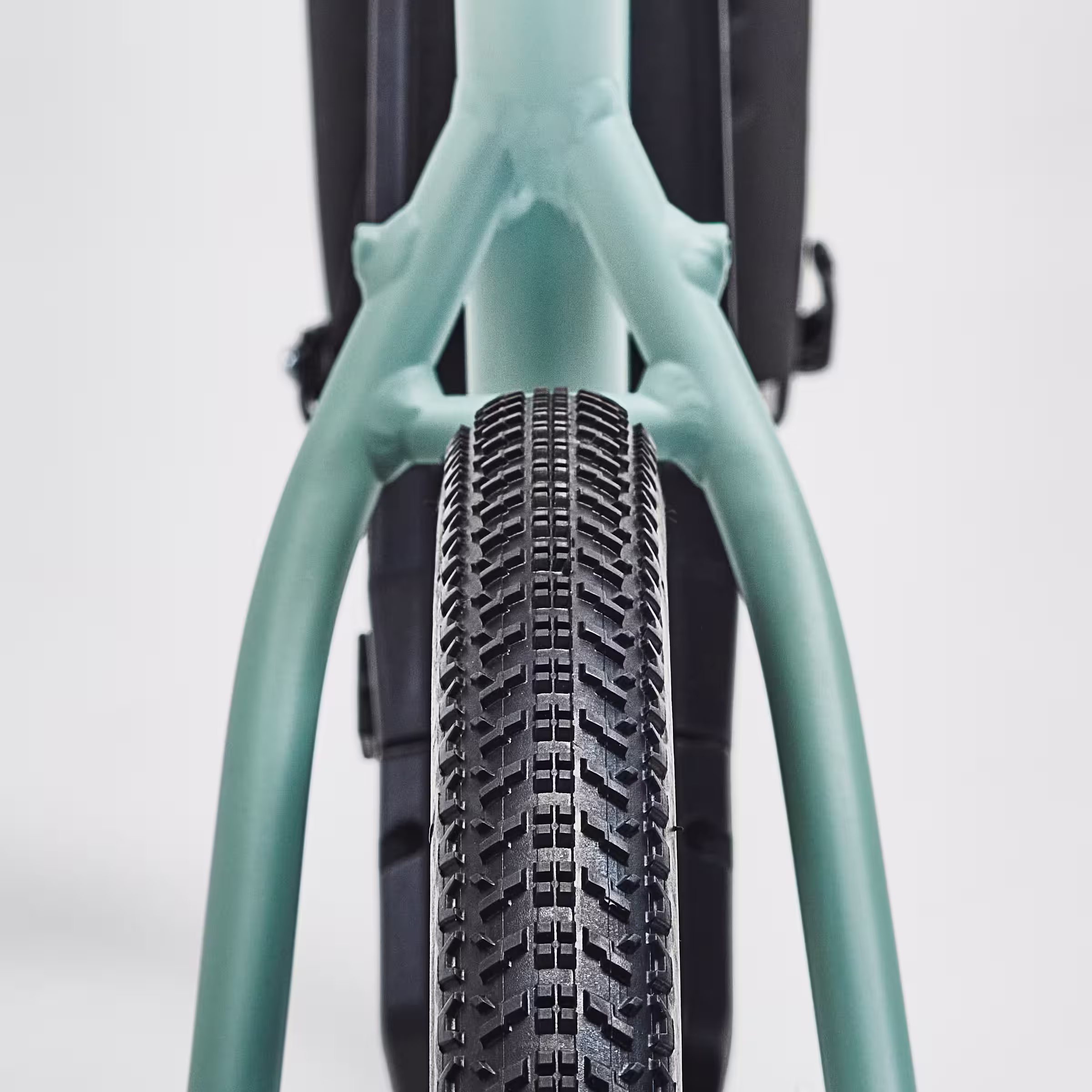 La fourche suspendue avec un débattement de 63 mm absorbe les irrégularités du terrain pour un pédalage sans secousses. Notre vélo féminin avec moteur intégré est équipé de pneus tout chemin résistants à la crevaison, garantissant confort et sécurité sur route comme sur sentier.