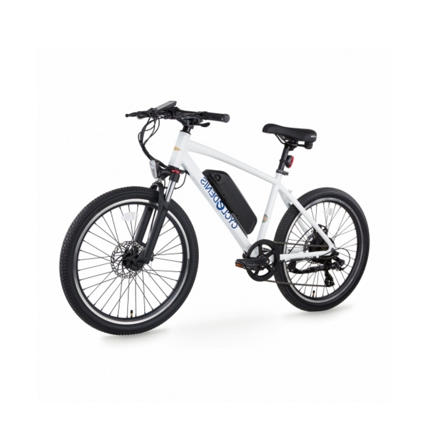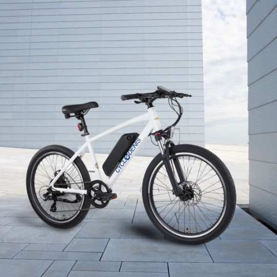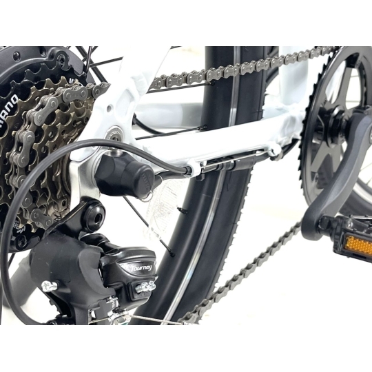 Grâce à son cadre en aluminium, ce vélo électrique est léger et robuste. Il offre une fourche à suspension avec un débattement de 100 mm, idéale pour absorber les chocs lors des trajets sur des surfaces irrégulières. La transmission Shimano Tourney à 7 vitesses permet une conduite fluide, que vous choisissiez un terrain plat ou légèrement vallonné. Vous apprécierez également la facilité de freinage avec les freins à disque 160 mm AV/AR, garantissant une sécurité maximale.