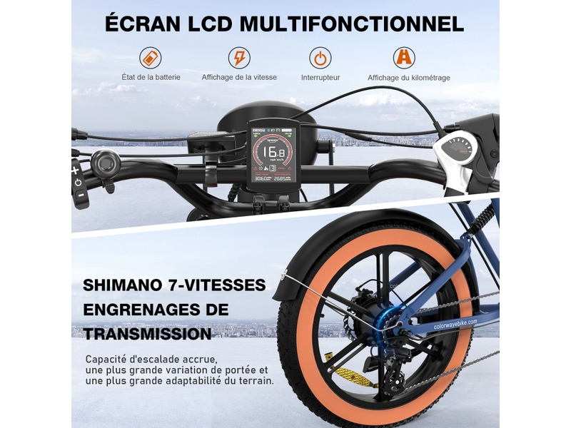 Le confort est une priorité avec notre vélo à assistance électrique. Il est doté d’une fourche avant amortie qui absorbe les vibrations, offrant une conduite plus douce. Un écran LCD multifonctionnel vous fournit des informations essentielles telles que la vitesse, la distance parcourue et le niveau de batterie, vous permettant de garder un œil sur vos performances. Des phares et feux arrière intégrés garantissent votre visibilité et votre sécurité, de jour comme de nuit. Le système à 7 vitesses permet une adaptation facile à divers reliefs et conditions de circulation, rendant chaque trajet plus agréable et moins contraignant.