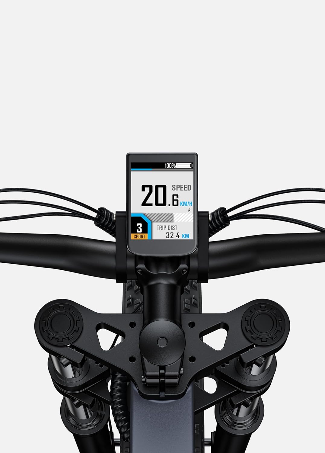 Notre cycle électrique à suspension complète intègre un ensemble de fonctionnalités intelligentes pour améliorer votre expérience. Un système de contrôle de la vitesse intelligent maintient une cadence constante, tandis qu’une interface LCD intuitive fournit des données en temps réel sur votre vitesse, l’état de la batterie et les modes de conduite. Les phares automatiques et les feux sensibles à la lumière renforcent votre visibilité et votre sécurité, et des ports de chargement pour téléphone portable ajoutent une couche de commodité supplémentaire.