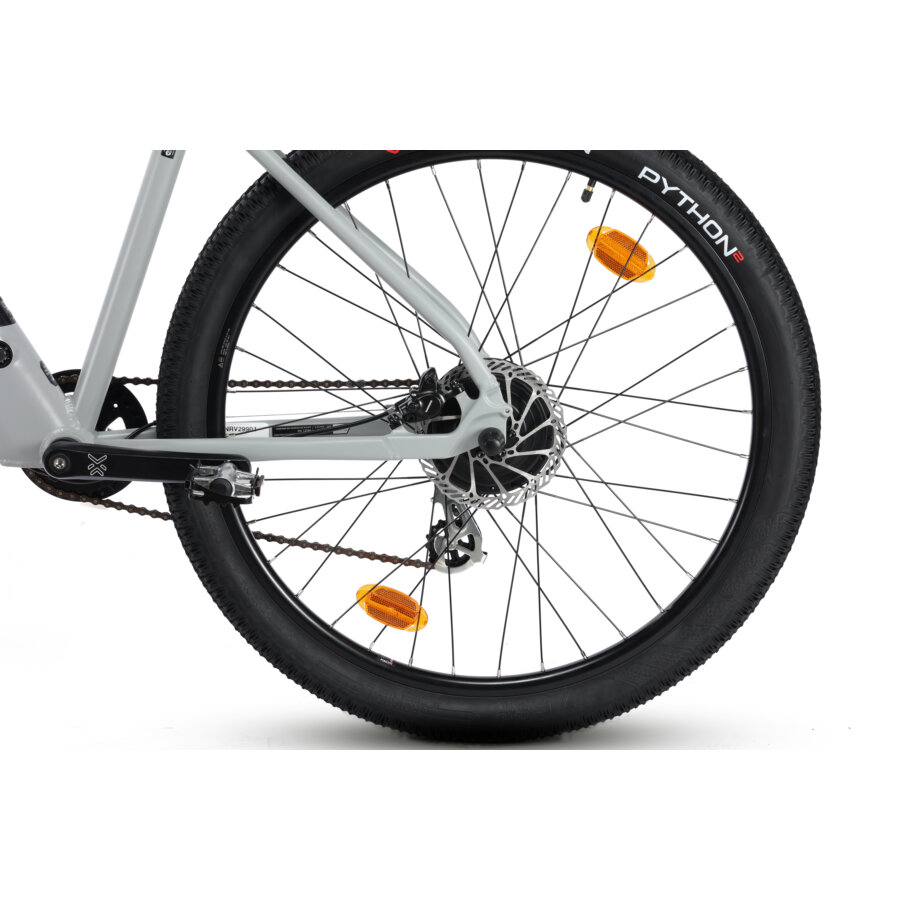 Pour votre sécurité et votre confort de conduite, nous avons équipé ce Vélo Électrique Gris d’un système de freinage à disques hydrauliques. Ces freins offrent une puissance de freinage optimale et une réactivité exceptionnelle, même dans des conditions difficiles, garantissant des arrêts sûrs et précis. La transmission à 9 vitesses, quant à elle, vous permet d’adapter facilement votre rythme à tous les reliefs, qu’il s’agisse de côtes abruptes ou de chemins plats, offrant une polyvalence remarquable et une fluidité dans le changement des rapports.